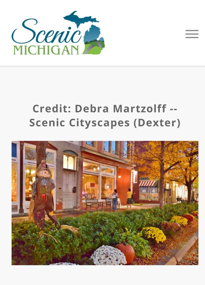 “When I first moved here (7 years ago), any time I drove to Chelsea, I would take a different road, and I fell in love with the beautiful barns between here and there” said Dexter resident and photographer Debbie Martzolff, whose photo “Evening Glory” recently earned her some respect in Scenic Michigan’s fall photo contest. The photo, shot at the peak of the golden hour, gloriously captures the historic Lesser Farm on Island Lake Road against the the golden sky of early evening. Of 1400 entries in the contest, Martzolff earned on of the top 10 Finalist positions in the Landscape Division of the contest. This makes the second year in a row that the photophile has placed in the contest (see 2019's top ten photo Scenic Cityscapes below). “I am an amateur photographer, and I don’t follow all of the rules, I just take pictures of what I like, and what I think looks good.”