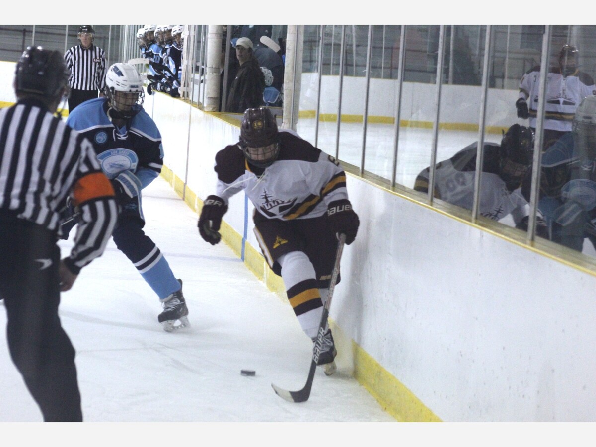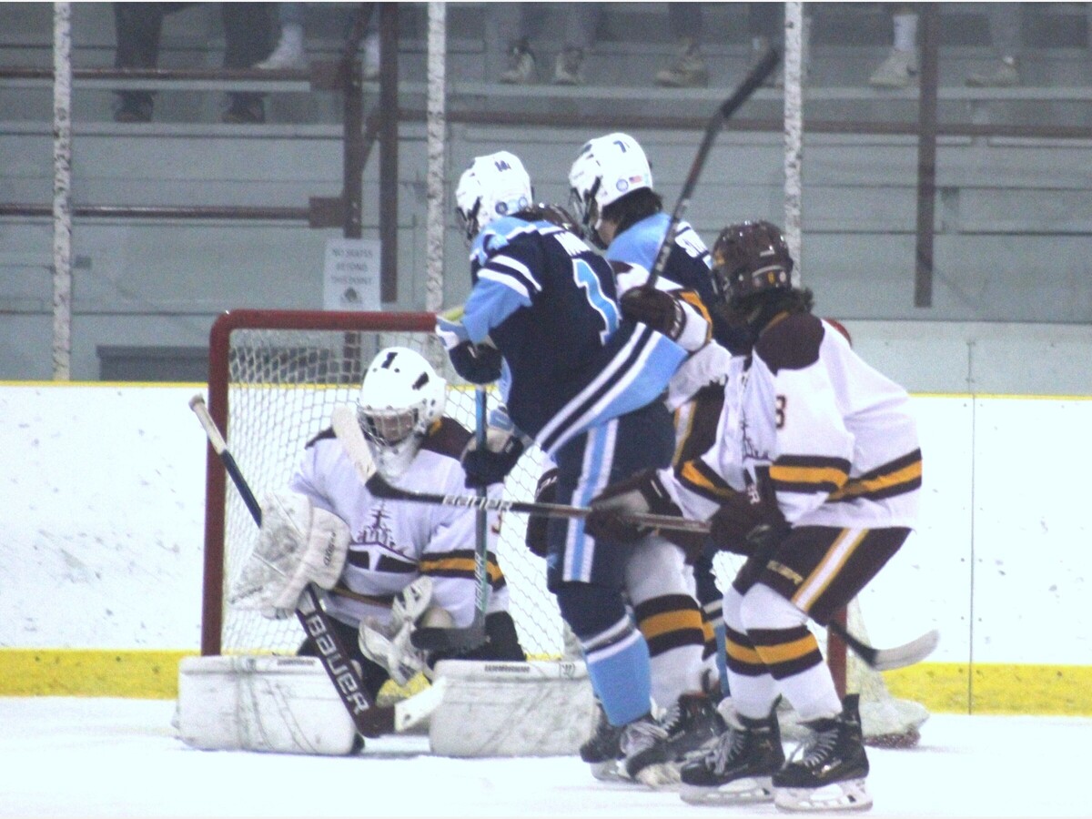 The lead grew in the second when a Dexter skater slipped on the ice and lost the puck. Skyline capitalized by picking up the loose puck and firing a shot home to make it 3-0.