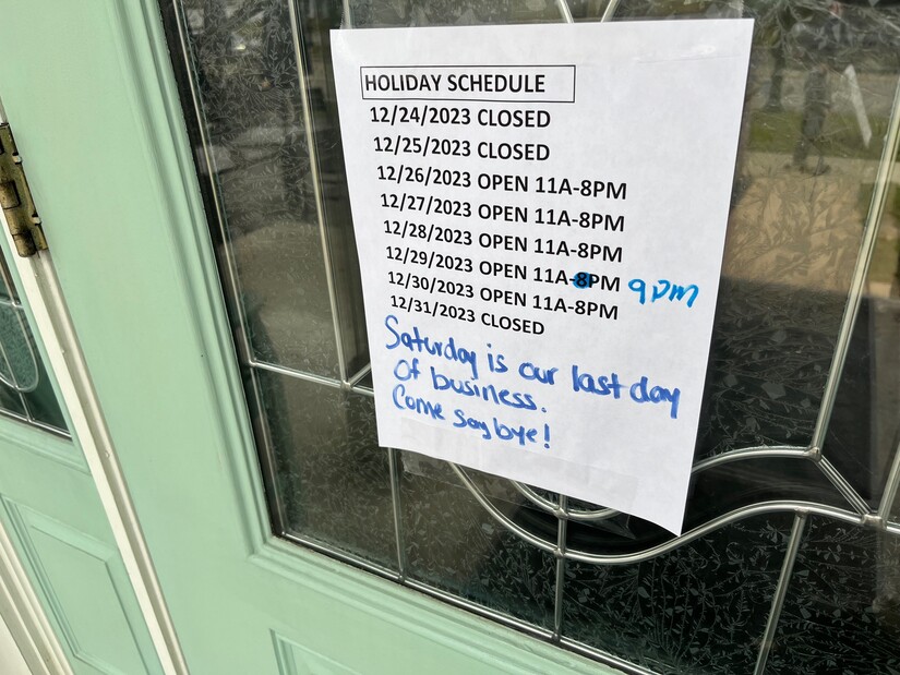 A note on the door announced the closing. Left on the front door, it said, "Saturday is our last day of business. Come say bye!”