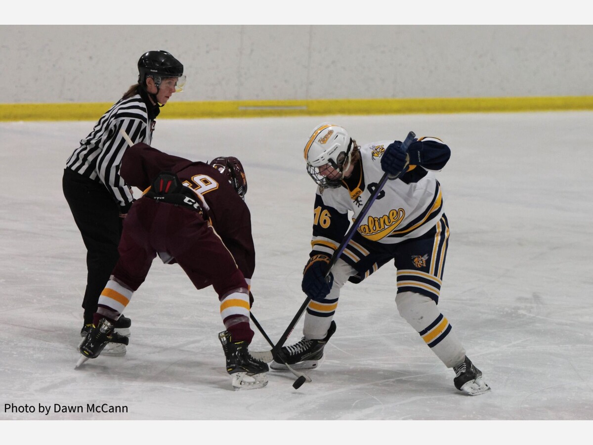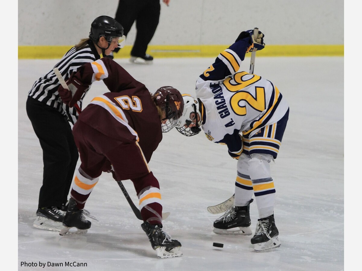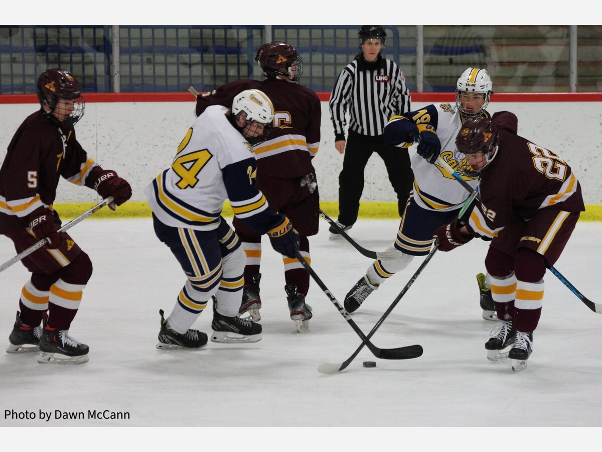 Jeremy Schroeder took a nice centering pass from Jack Dubuque and lifted it home with 51 seconds left in the second, but Pioneer found the net with six seconds left in the period to tie the game at 3-3 after two.