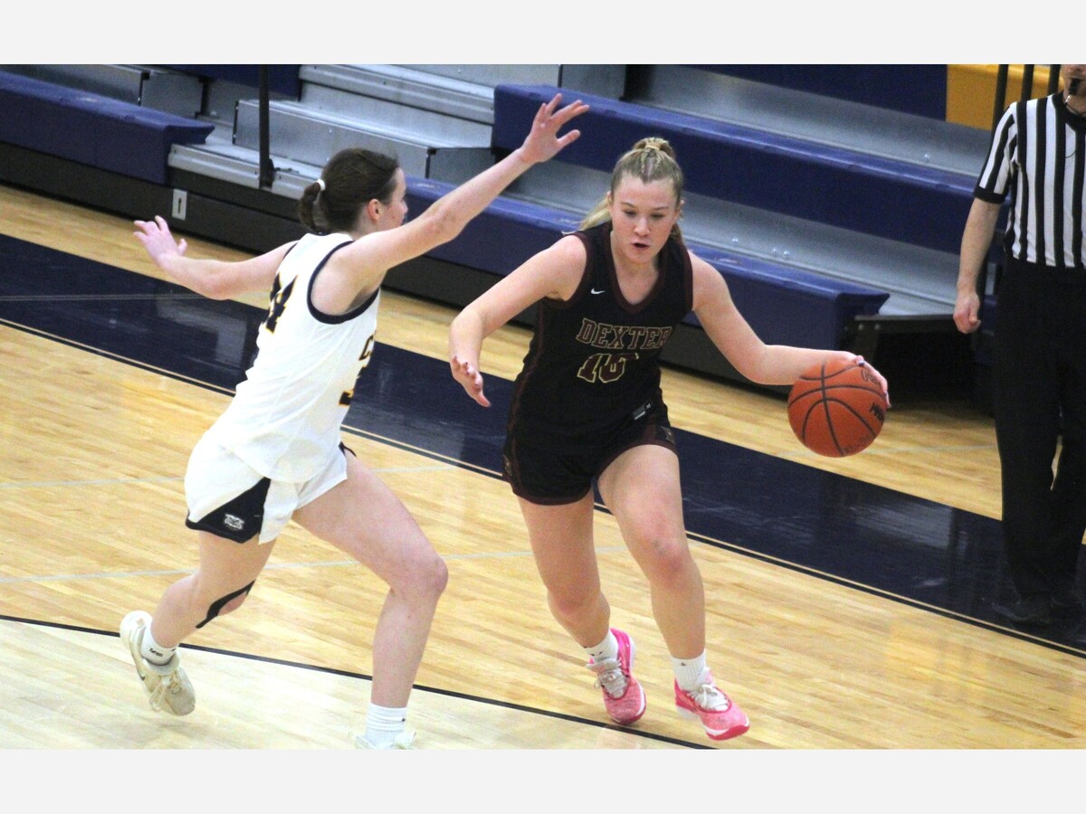 A big Alyssa Gullekson triple helped Dexter take a 9-7 lead after one quarter, but Bedford outscored the Dreads 14-12 in the second to tie the game at 21 at the break.