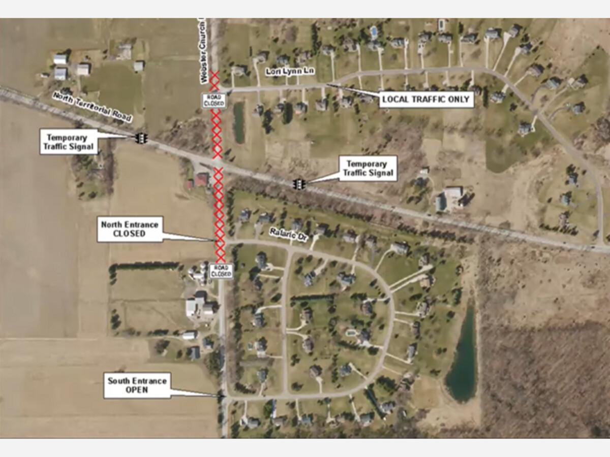 Berkholtz and Houle provided detailed timelines, noting that one lane of traffic will be maintained on N. Territorial Rd with a temporary traffic signal and lane closures during construction. Webster Church Rd will be closed to all traffic north and south of the intersection to minimize vehicle activity in the work zone during construction. A detour will be posted. The closure is expected to be in place for approximately six to eight weeks, weather pending. The WCRC expects work to begin mid-April and be finished by the end of June.