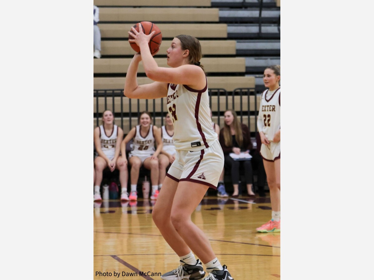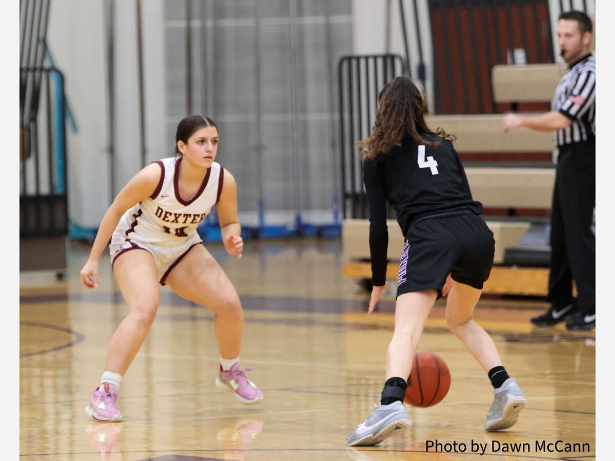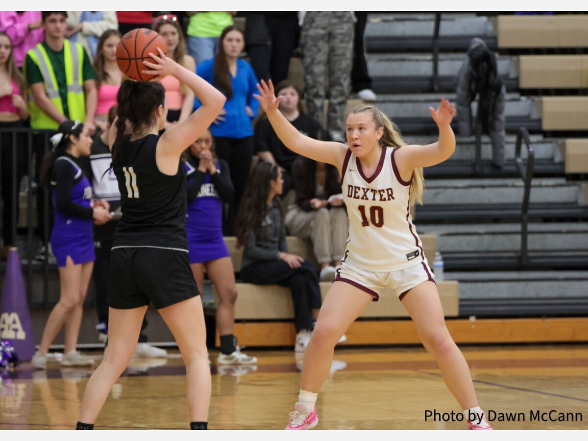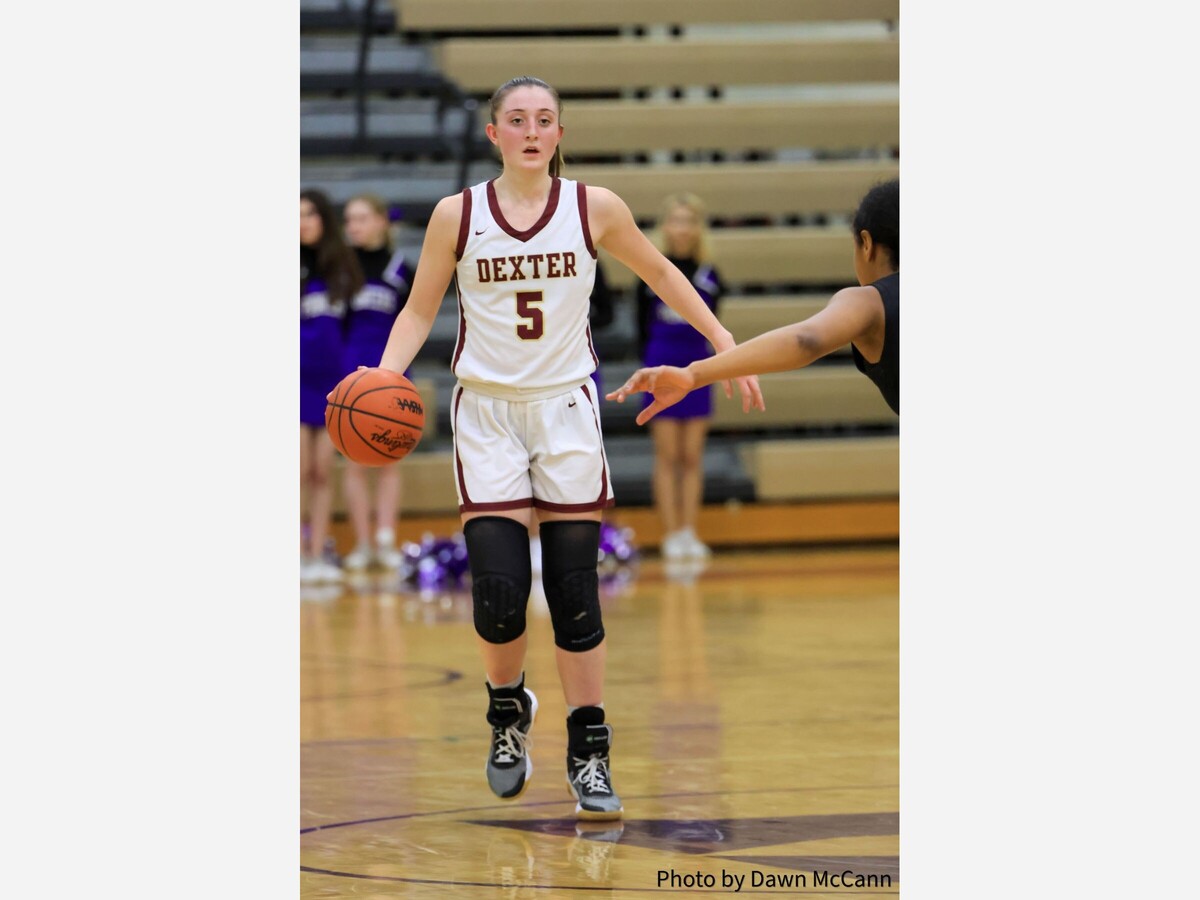 Addison Chase hit a ket three-pointer in the fourth to spark the Dexter rally past Pioneer. Photo by Dawn McCannDexter opened the fourth with a 9-2 run to take a 29-28 lead.