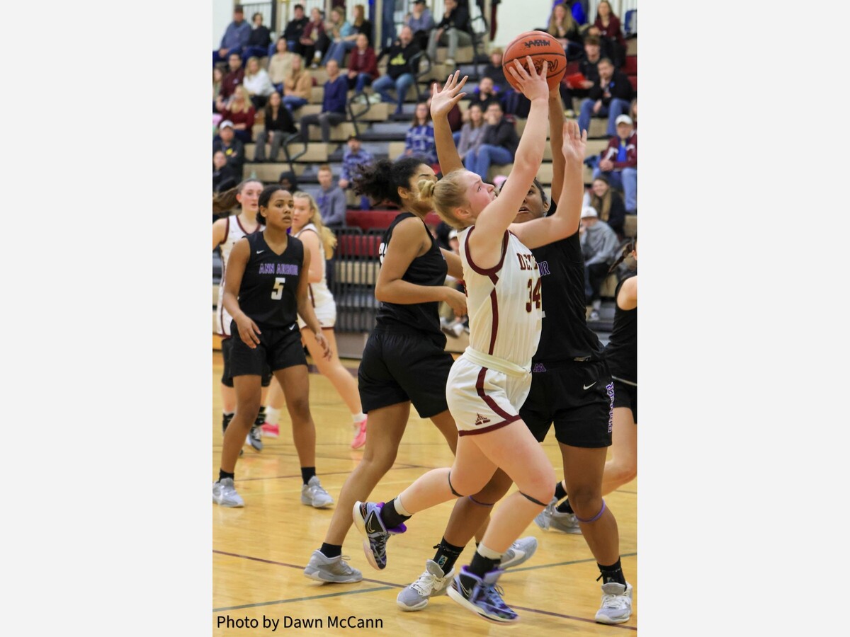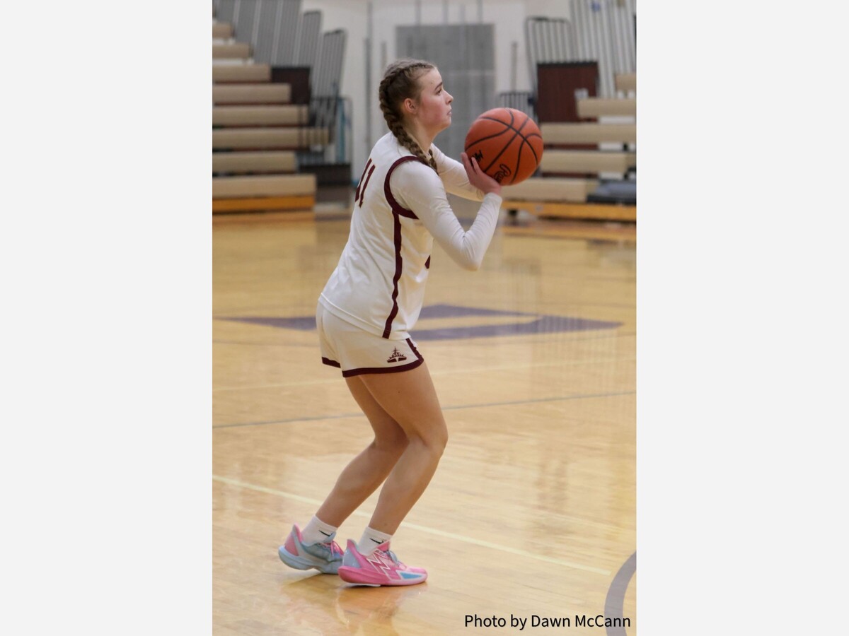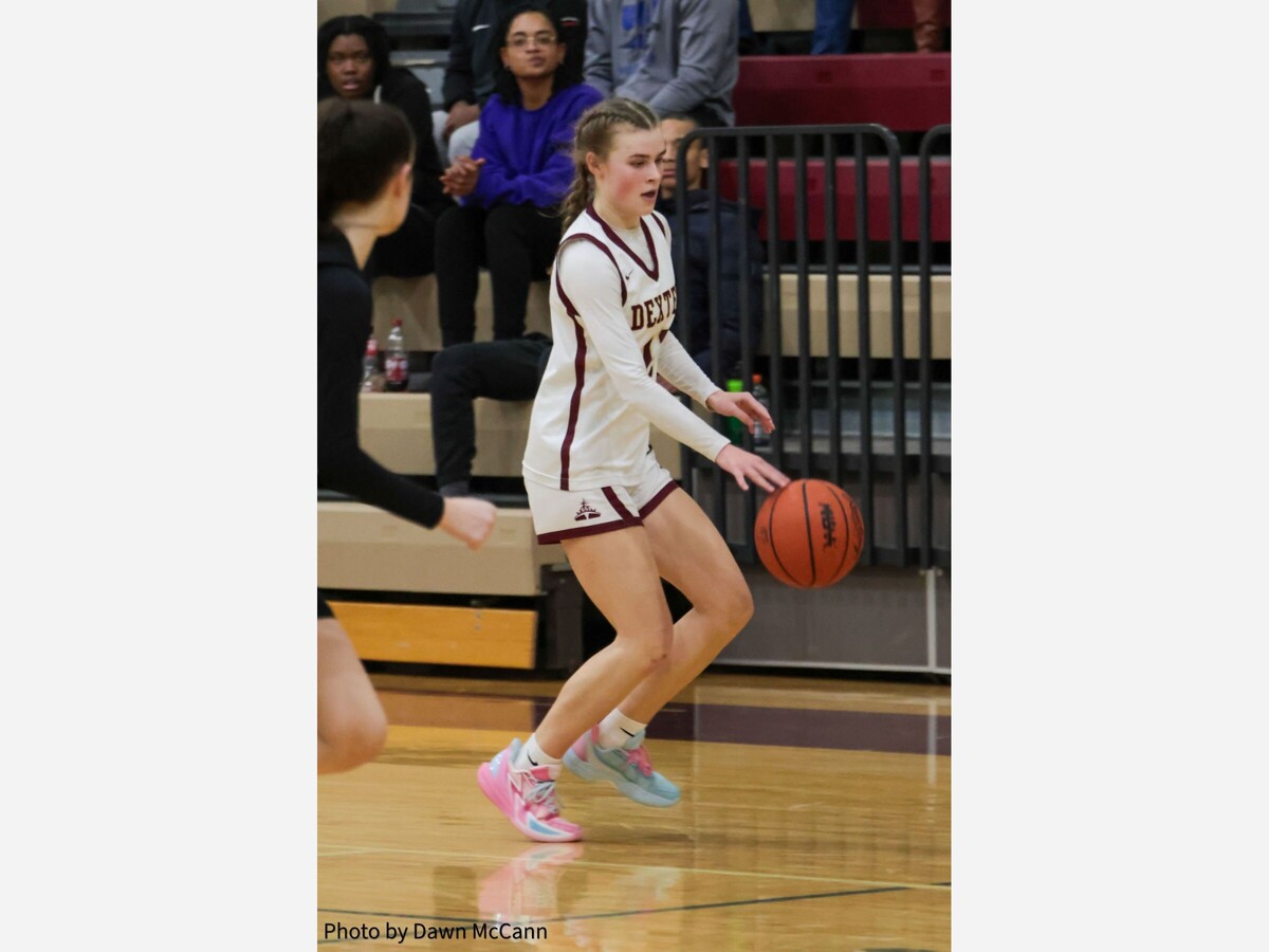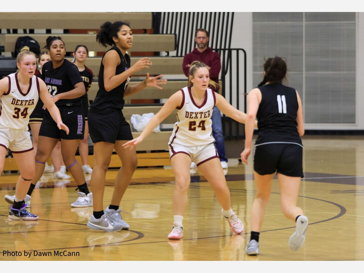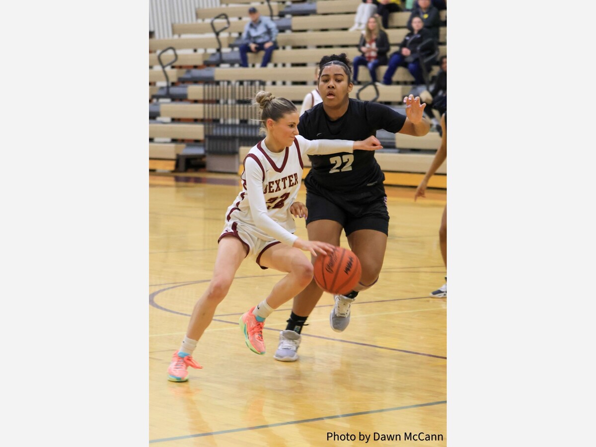 Addison Chase hit a ket three-pointer in the fourth to spark the Dexter rally past Pioneer. Photo by Dawn McCannDexter opened the fourth with a 9-2 run to take a 29-28 lead.