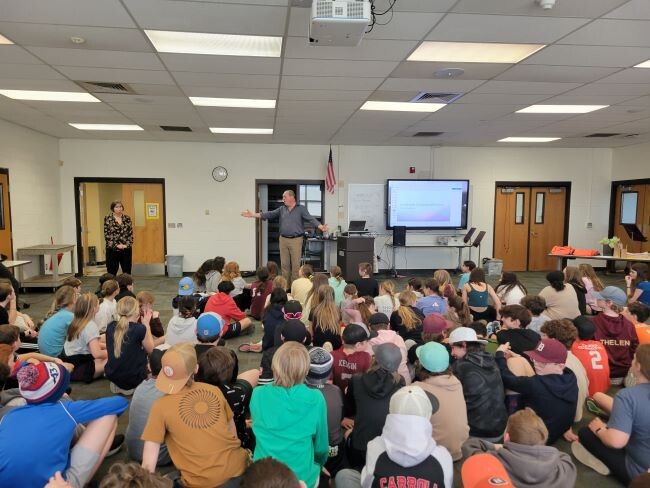 The project culminated in the “Grand Reveal” on Wednesday, March 13th, the day the paper was published. One hundred excited students gathered in Creekside’s Innovation Center, where Chuck Colby announced the winners selected by each business. Clapping and cheering accompanied each winning announcement. Several talented students who entered more than once won multiple times.