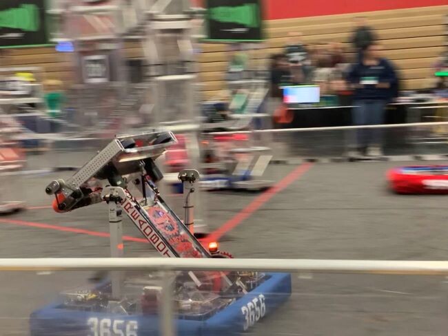 “At Belleville, we had no vision,” says strategy subteam member Luke Baur. Between Belleville and Troy, the vision subteam worked hard to incorporate machine vision into the bot. With one camera mounted low to allow the robot to know where it was on the field, students used linear algebra and pose estimation to drastically improve autonomous control of the robot. This allowed for higher consistent scoring during the autonomous portion of the matches.