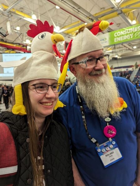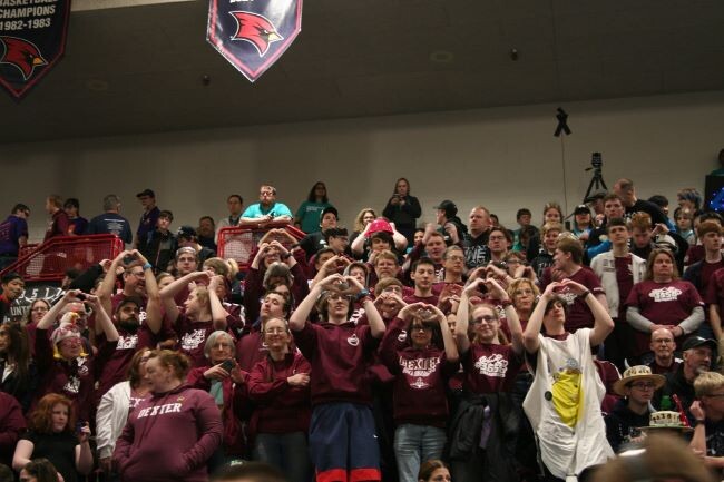 Here and in the article's featured photo the Dreadbots show their spirit in the stands. (Photos by Penelope Babe and Lori Sprague)Despite finishing with a dismal 3-9-0 qualifying match record, other teams looked past the rankings. They recognized the Dreadbot’s consistent performance and were chosen to join the 4th-ranked alliance for division finals. During finals, the Dreadbots hit their stride, combining with their alliance partners (Team 4967, That ONE Team, and Team 1701, The RoboCubs) to sweep through the double elimination upper bracket and face the 1st ranked alliance in the division championship final match on the Consumers Energy field. The #4 Alliance was eventually defeated by the The #1 Alliance, but not before beating them once and amassing more than enough ranking points to comfortably qualify for the 2024 World Championships, to be held in Houston on April 17-20, 2024.