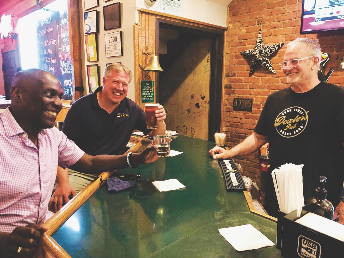 Afterward, the two Mayors headed to Dexter’s Pub, a staple in town for nearly three decades. Owner, Peter Theocharakis, who has been a strong supporter of The Encore Theatre right from its inception, gave both Mayors the VIP treatment. Bonding over a cold beverage on a humid, late summer evening, the two made a toast to their new friendship, to The Encore Musical Theatre Company and to the great City that went above and beyond to facilitate the theatre’s move to the historic Copeland Building.