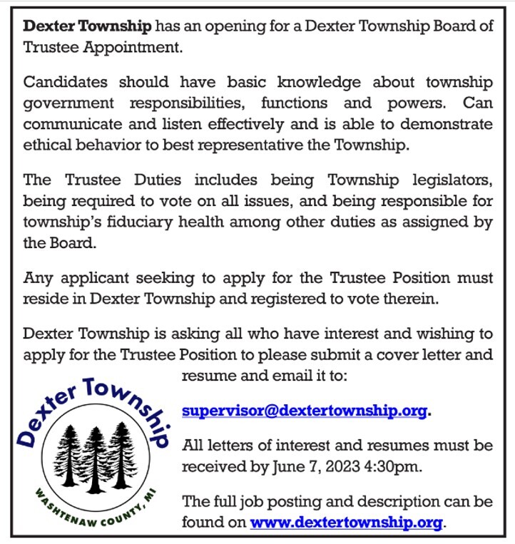 Dexter Twp: Twp Board Opening