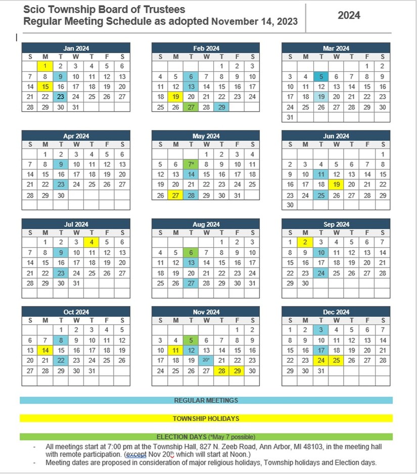 Scio Twp: Schedule of 2024 Board Regular Mtgs