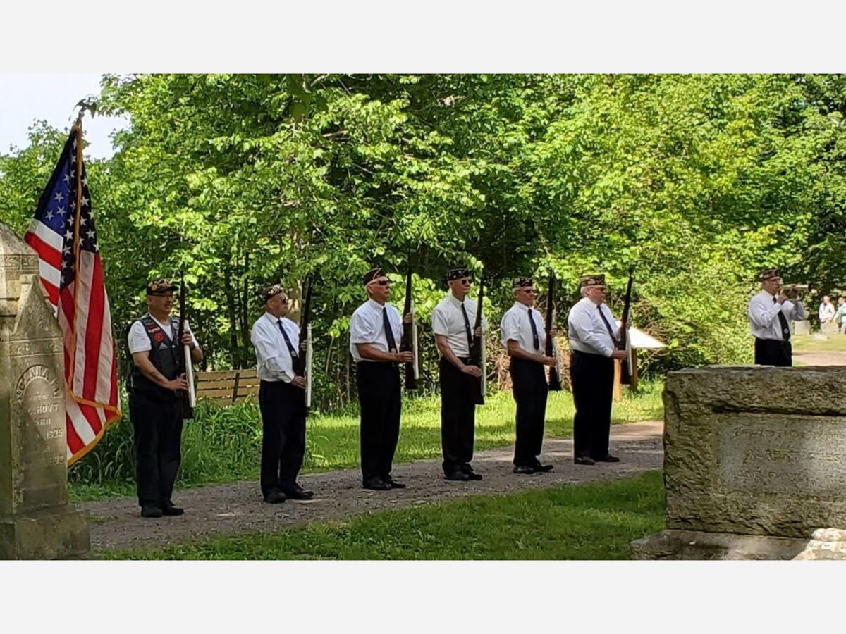 Dexter American Legion Honor Guard continued their long-established tradition of honoring our deceased veterans on this Memorial Day. On Monday morning, the Honor Guard visited Forest Lawn, St. Andrews, St. Joseph, and Webster-Church cemeteries to conduct short ceremonies which included a solemn prayer, 3 rifle volleys, and a bugle playing "Taps". With no fanfare, these Dexter veterans paid tribute to all those who have died while serving their country, as well as, remembering the veterans no longer with us, who served to protect the rights of all Americans. Memorial Day ceremonies were concluded at noon by returning the American flag to full staff in Monument Park downtown Dexter.