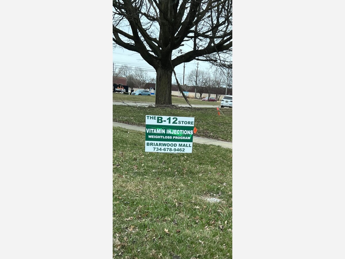 At this a time in history 1/2 the nation is resistant to getting a possible life saving vaccine against a pandemic. There is a shop in the local mall that is advertising injections of vitamin b 12 as a means of weight loss program. Dexter fat feminist activist artist Brenda Oelbaum wants to pop that balloon by high jacking their road side advertising campaign ... and replacing the altered signs with messages of self respect and love. The hand altered works of art will be found on the off ramps surrounding Briarwood Mall ( the same locations she stole them from. ) On Friday May 6th ... first friday' free art Friday but mainly International No Diet Day. 'F' B-12 injections... 'B' Yourself!