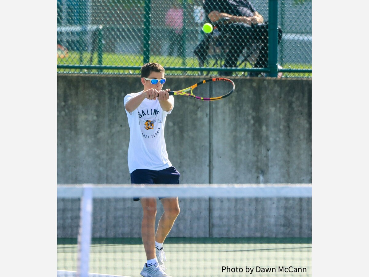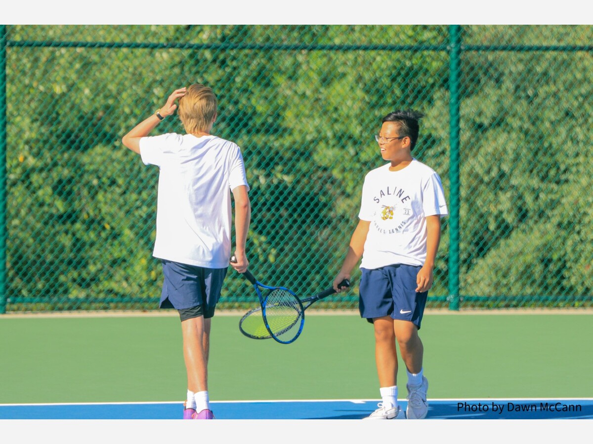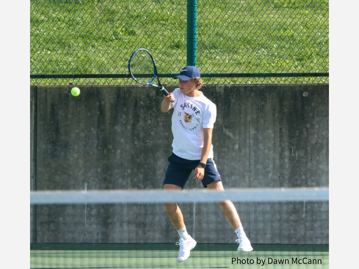 The Saline tennis team improved to 2-3 in the SEC Red after splitting a pair of conference matches last week.