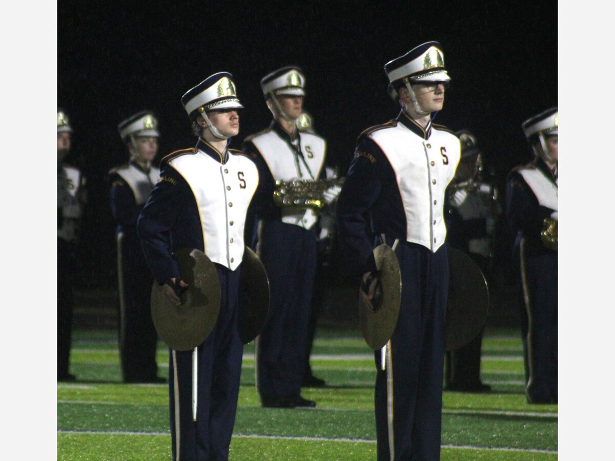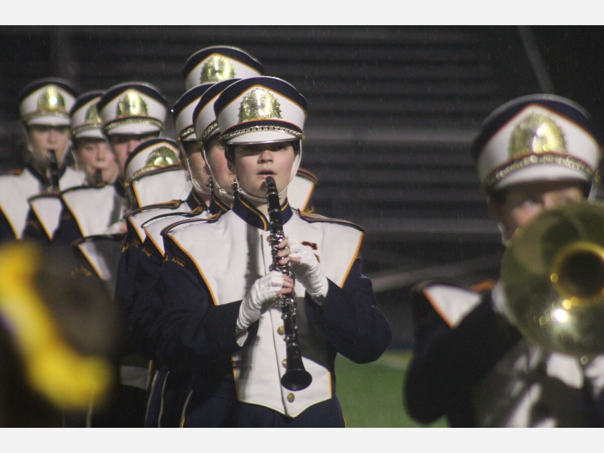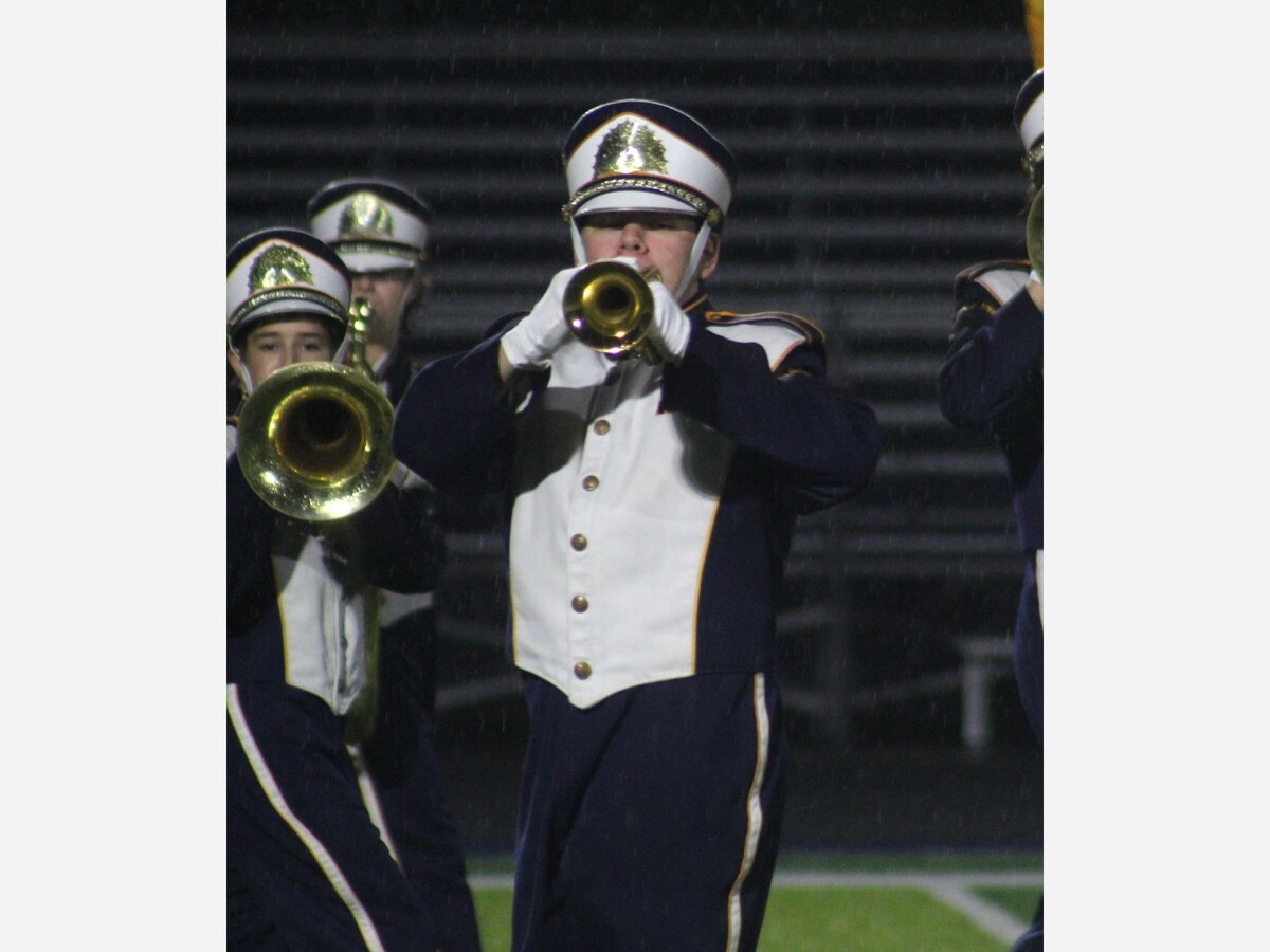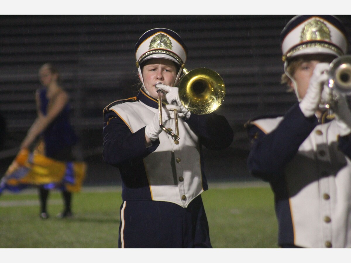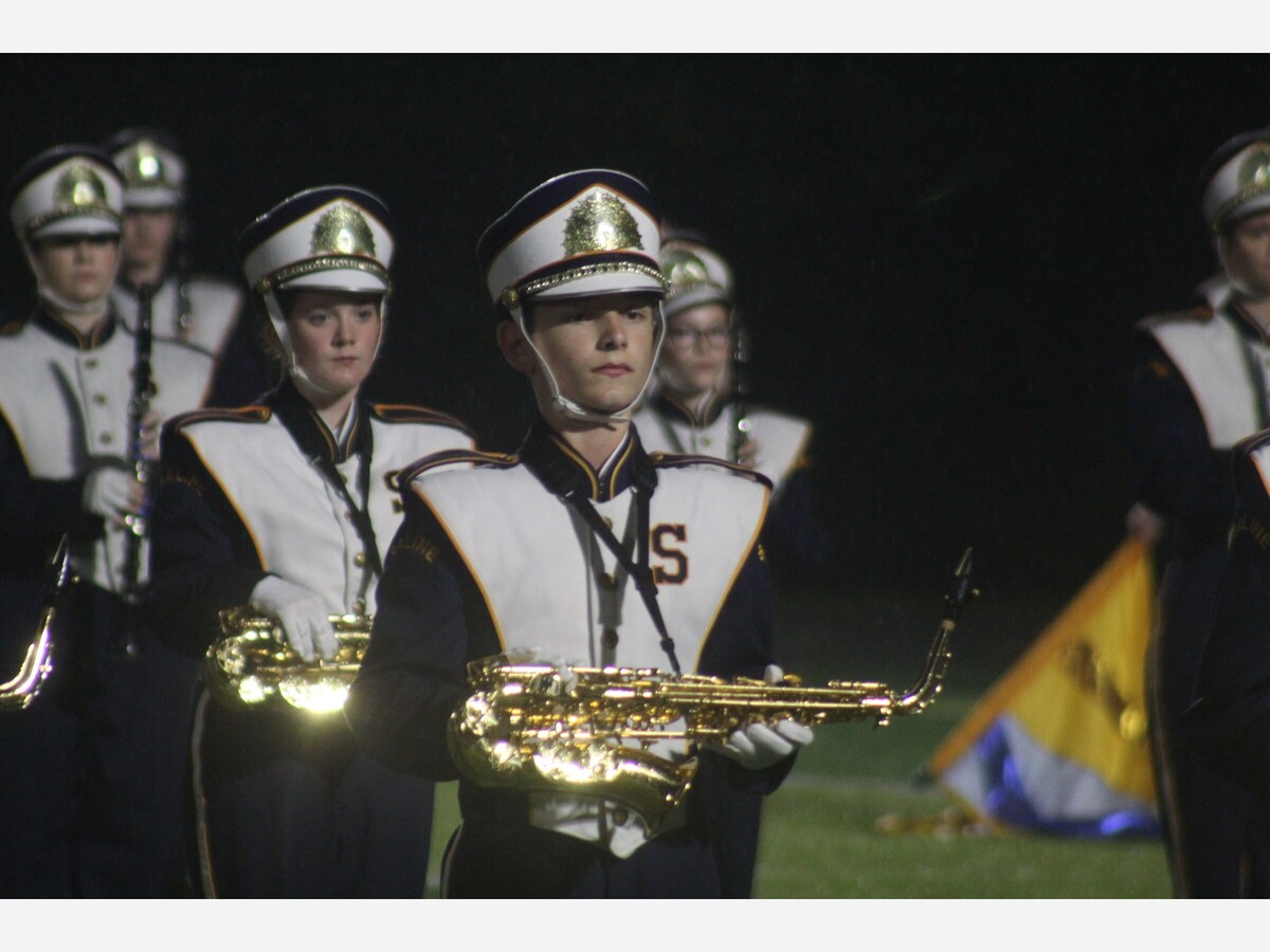 A little rain didn't stop an amazing night of marching band performances at the Chelsea Marching Band Exhibition. Fourteen marching bands from area school endured the rain to the joy of the audience. The Eastern Michigan University Marching Band closed the show in a heavy rain as the crowd cheered on. The Saline Band performed a set of songs by the King, Elvis Presley.