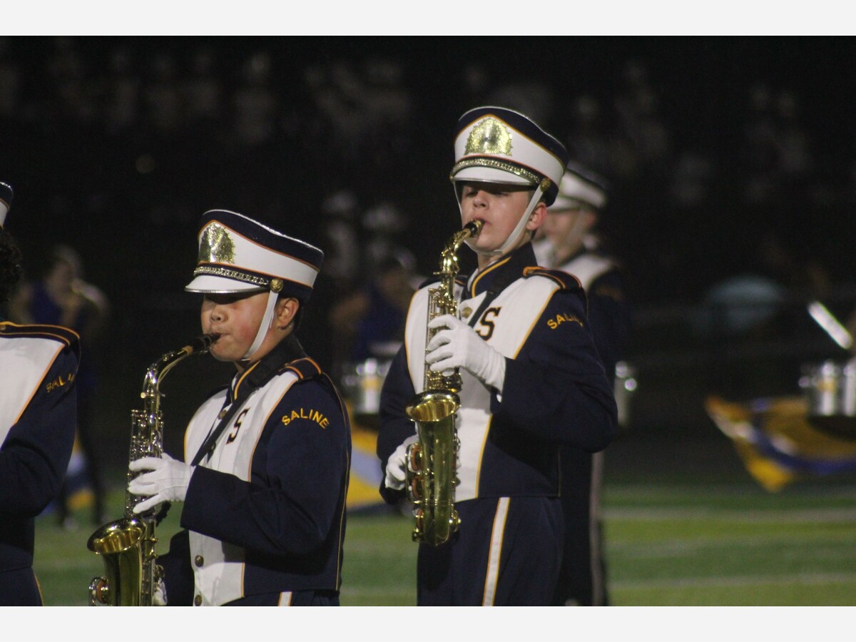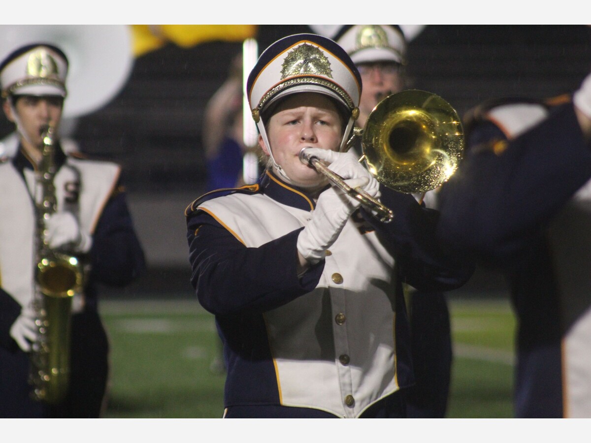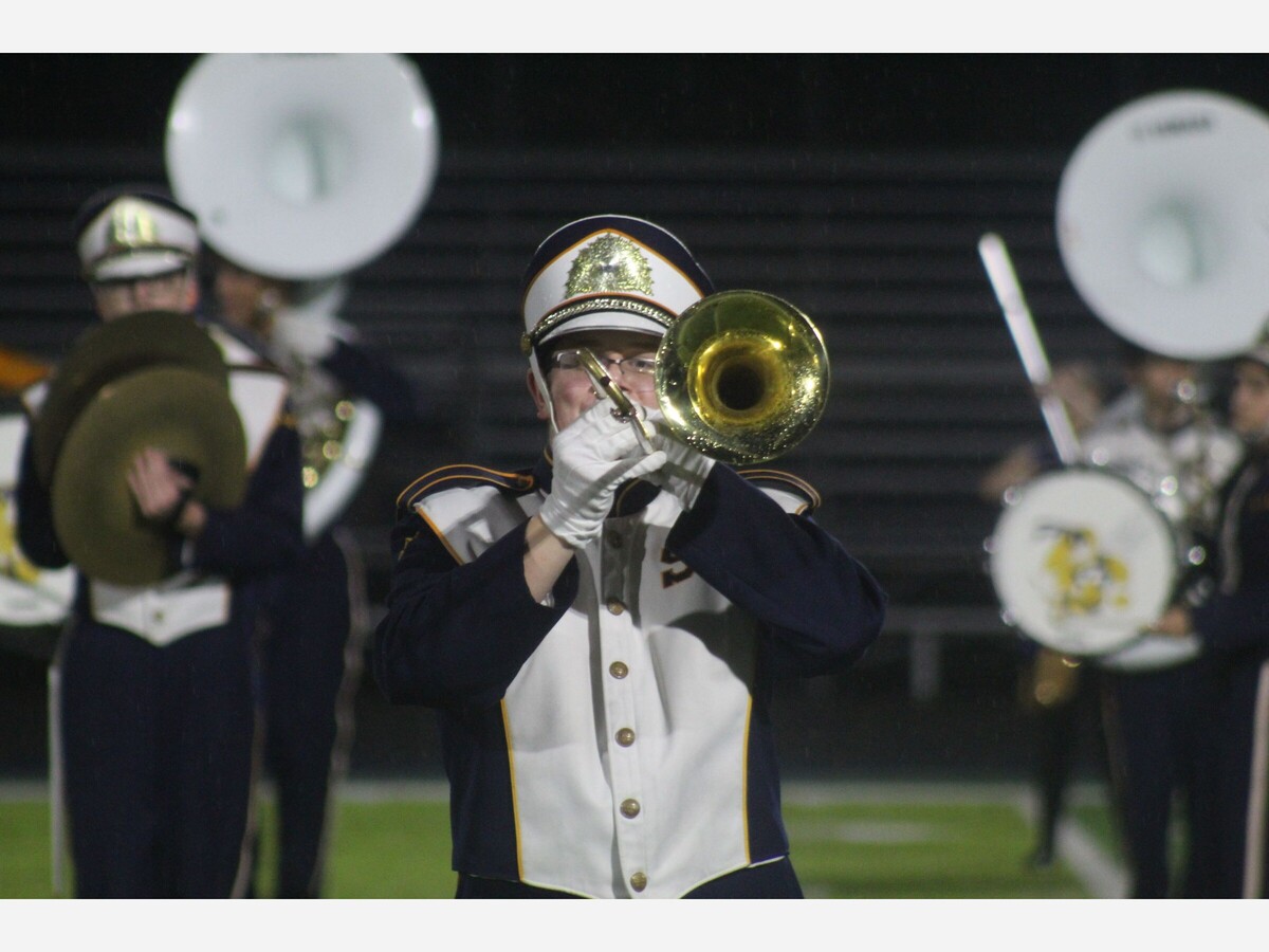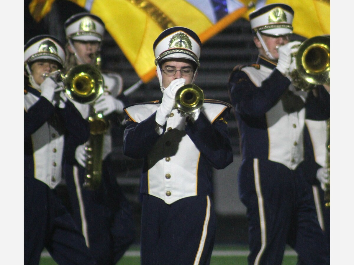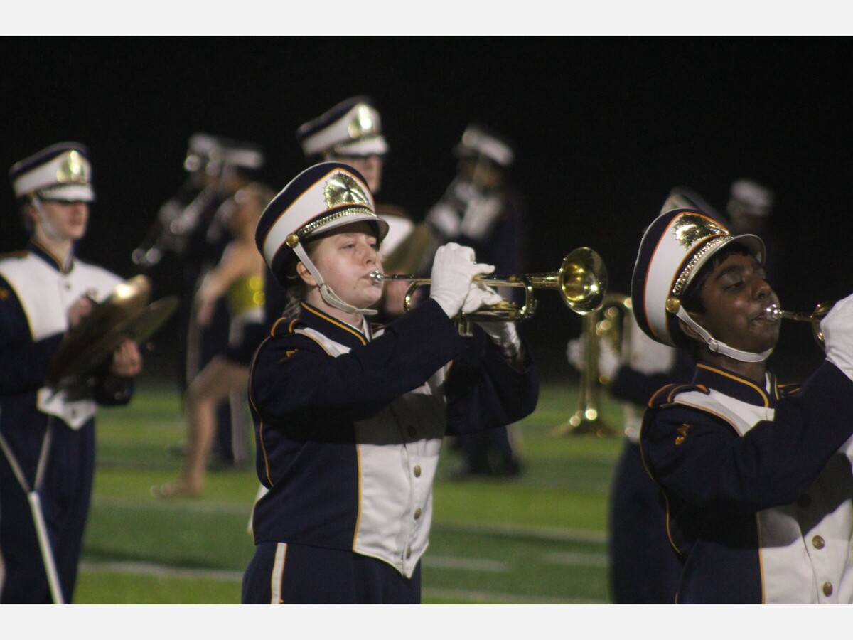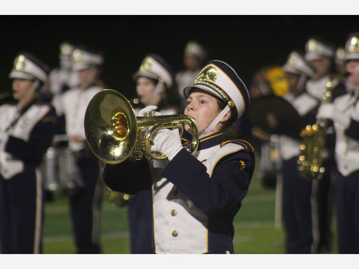 A little rain didn't stop an amazing night of marching band performances at the Chelsea Marching Band Exhibition. Fourteen marching bands from area school endured the rain to the joy of the audience. The Eastern Michigan University Marching Band closed the show in a heavy rain as the crowd cheered on. The Saline Band performed a set of songs by the King, Elvis Presley.