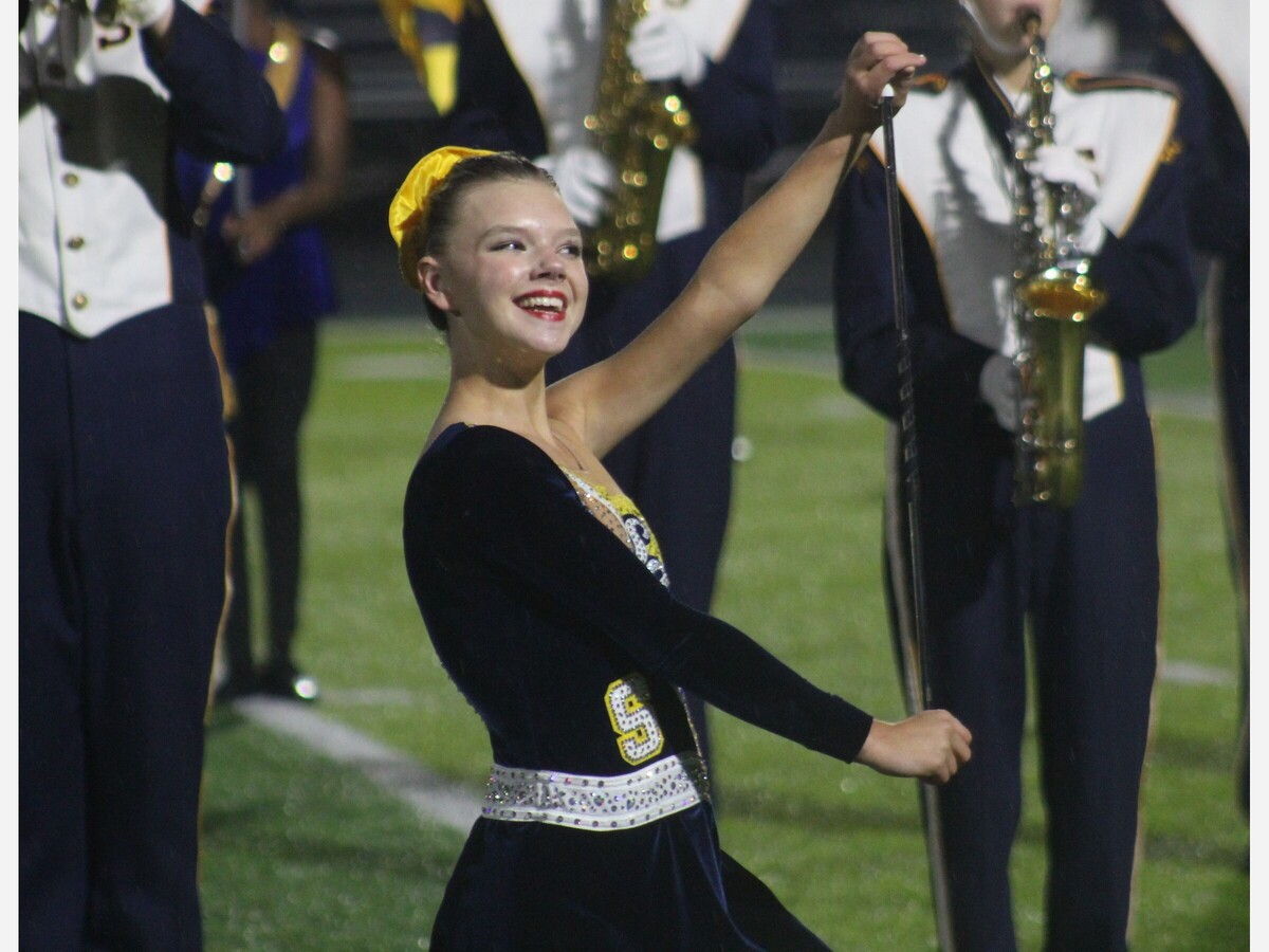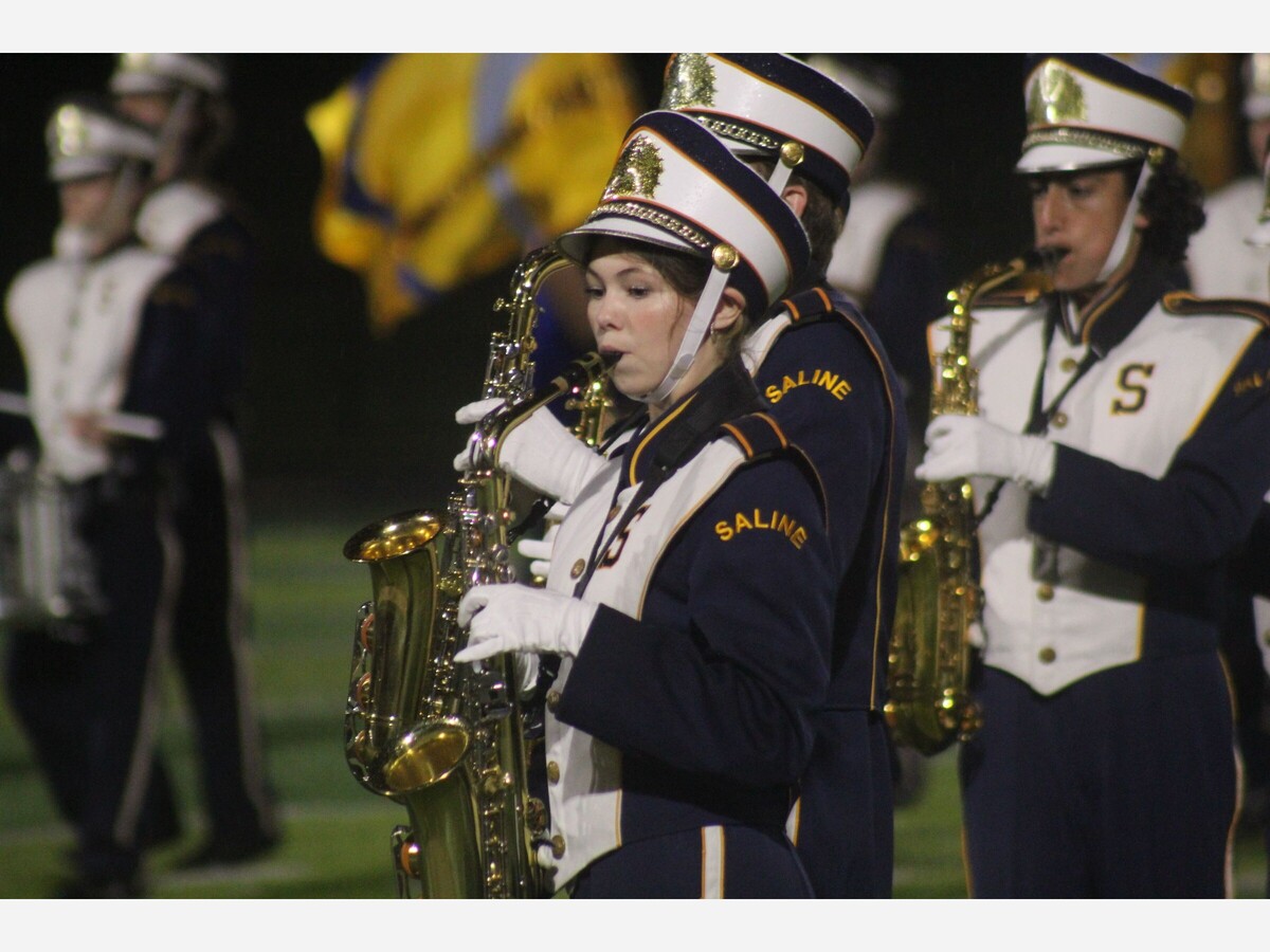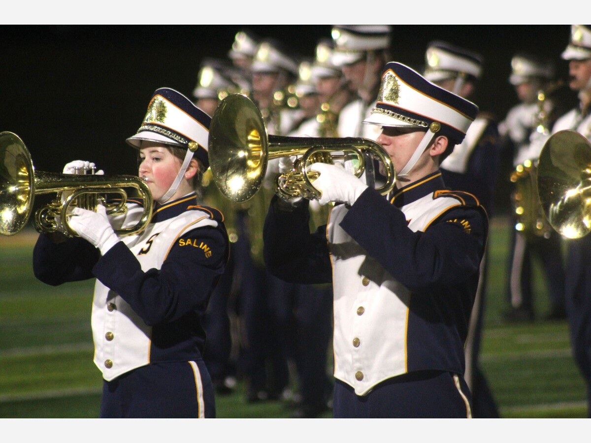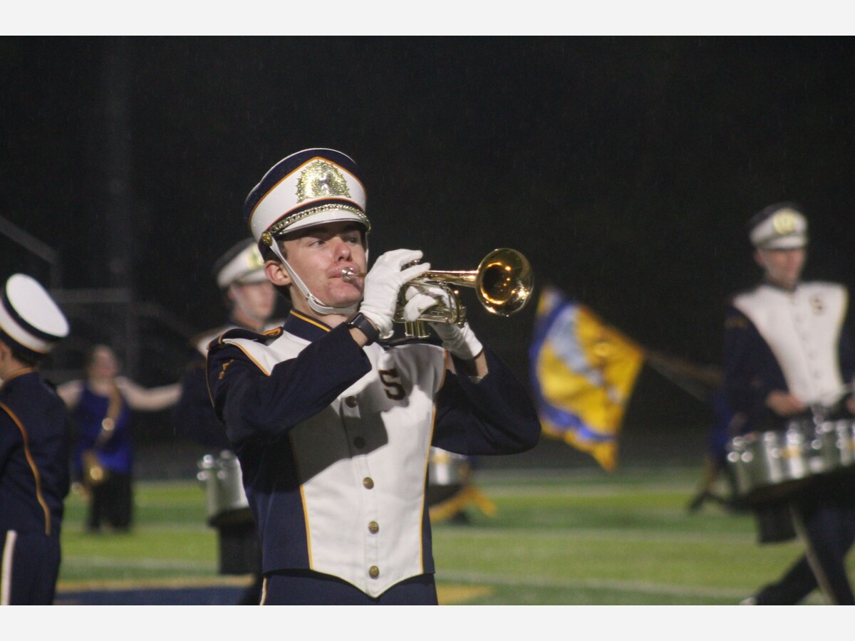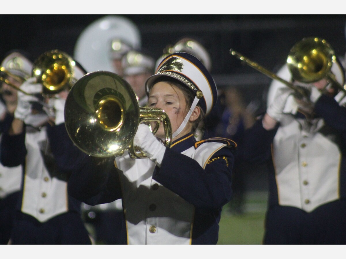 A little rain didn't stop an amazing night of marching band performances at the Chelsea Marching Band Exhibition. Fourteen marching bands from area school endured the rain to the joy of the audience. The Eastern Michigan University Marching Band closed the show in a heavy rain as the crowd cheered on. The Saline Band performed a set of songs by the King, Elvis Presley.