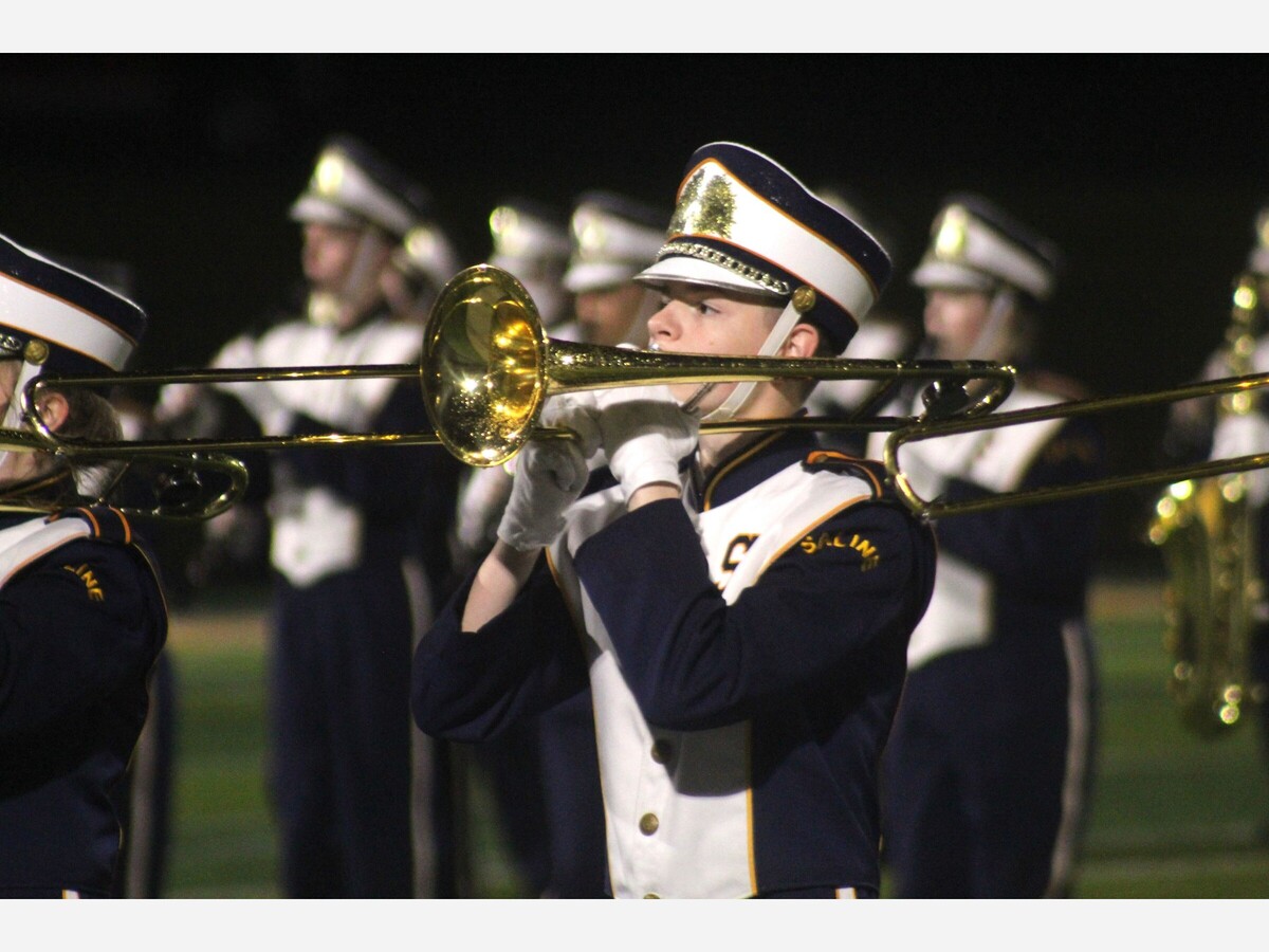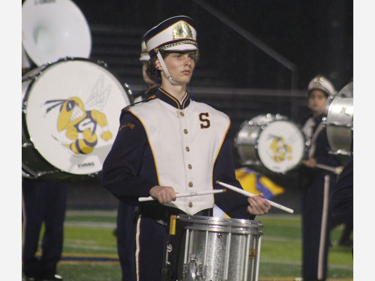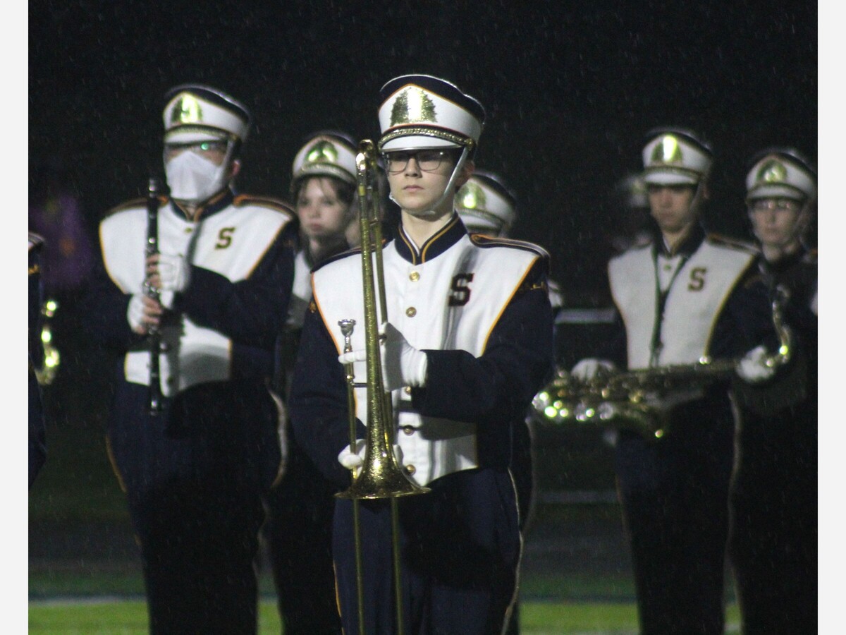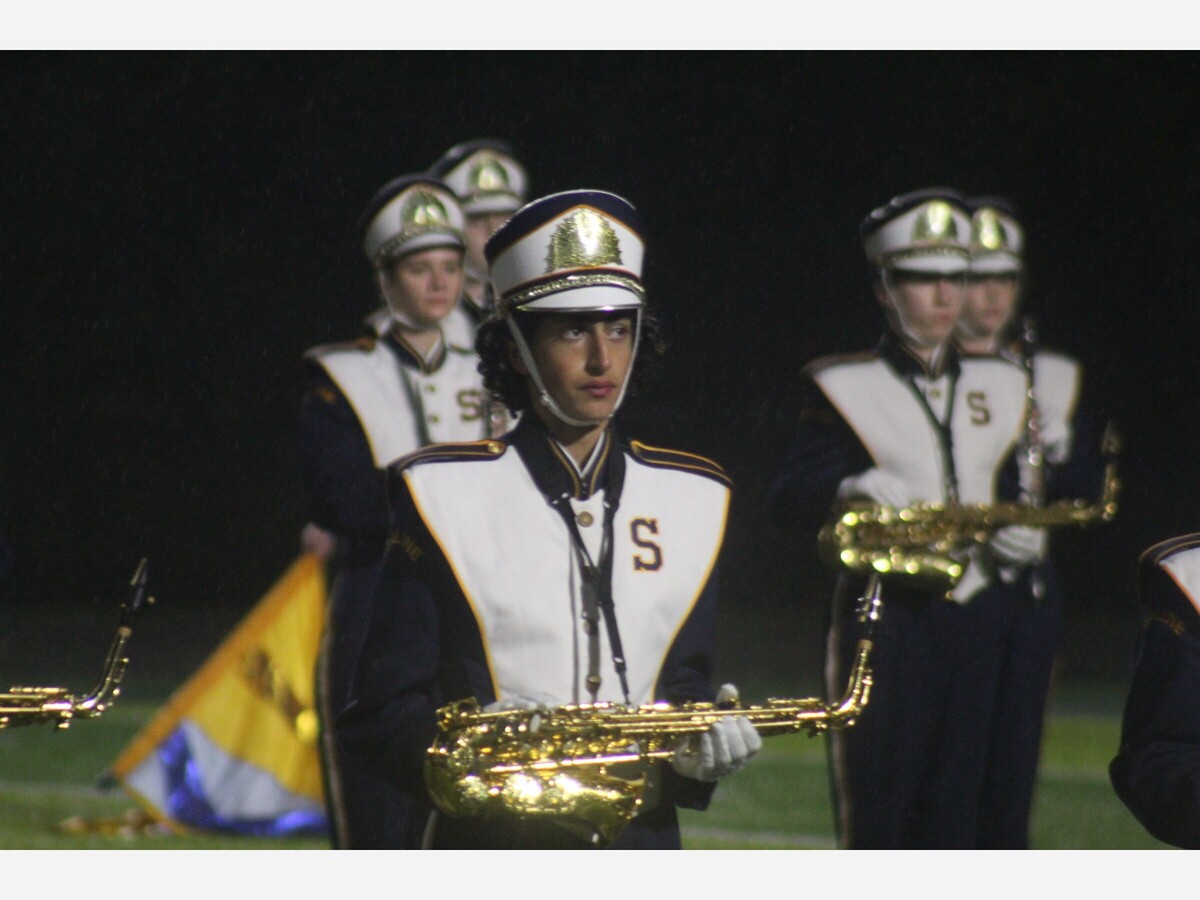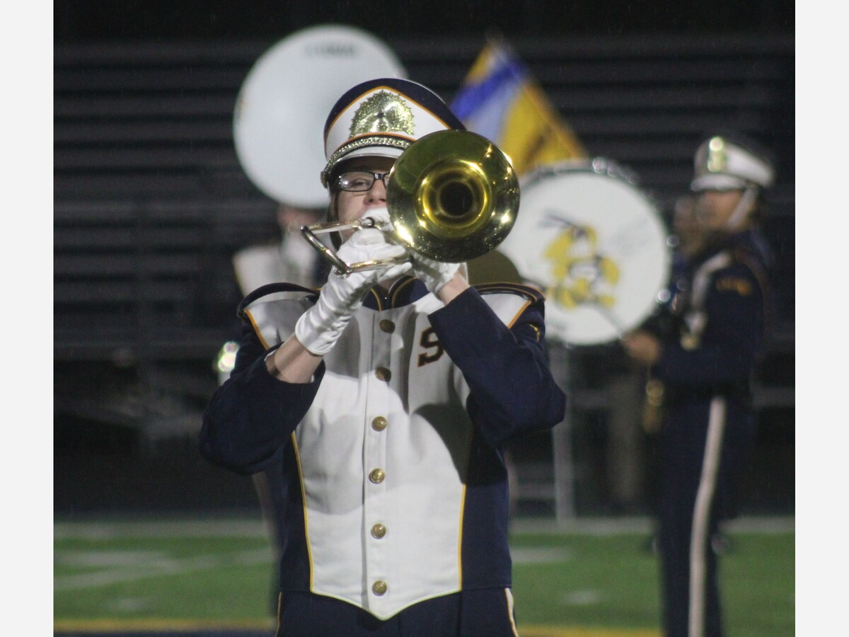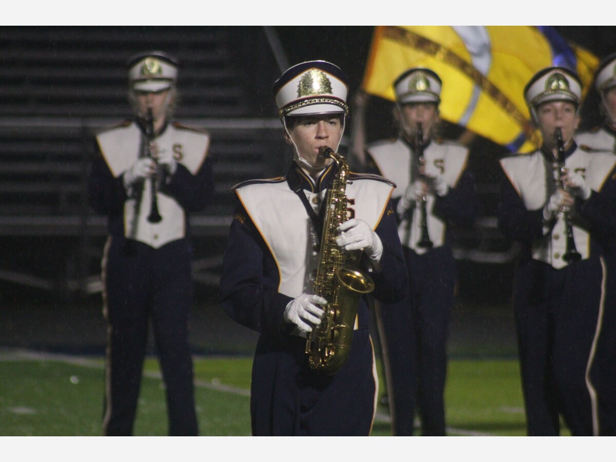 A little rain didn't stop an amazing night of marching band performances at the Chelsea Marching Band Exhibition. Fourteen marching bands from area school endured the rain to the joy of the audience. The Eastern Michigan University Marching Band closed the show in a heavy rain as the crowd cheered on. The Saline Band performed a set of songs by the King, Elvis Presley.