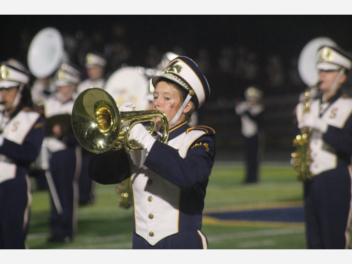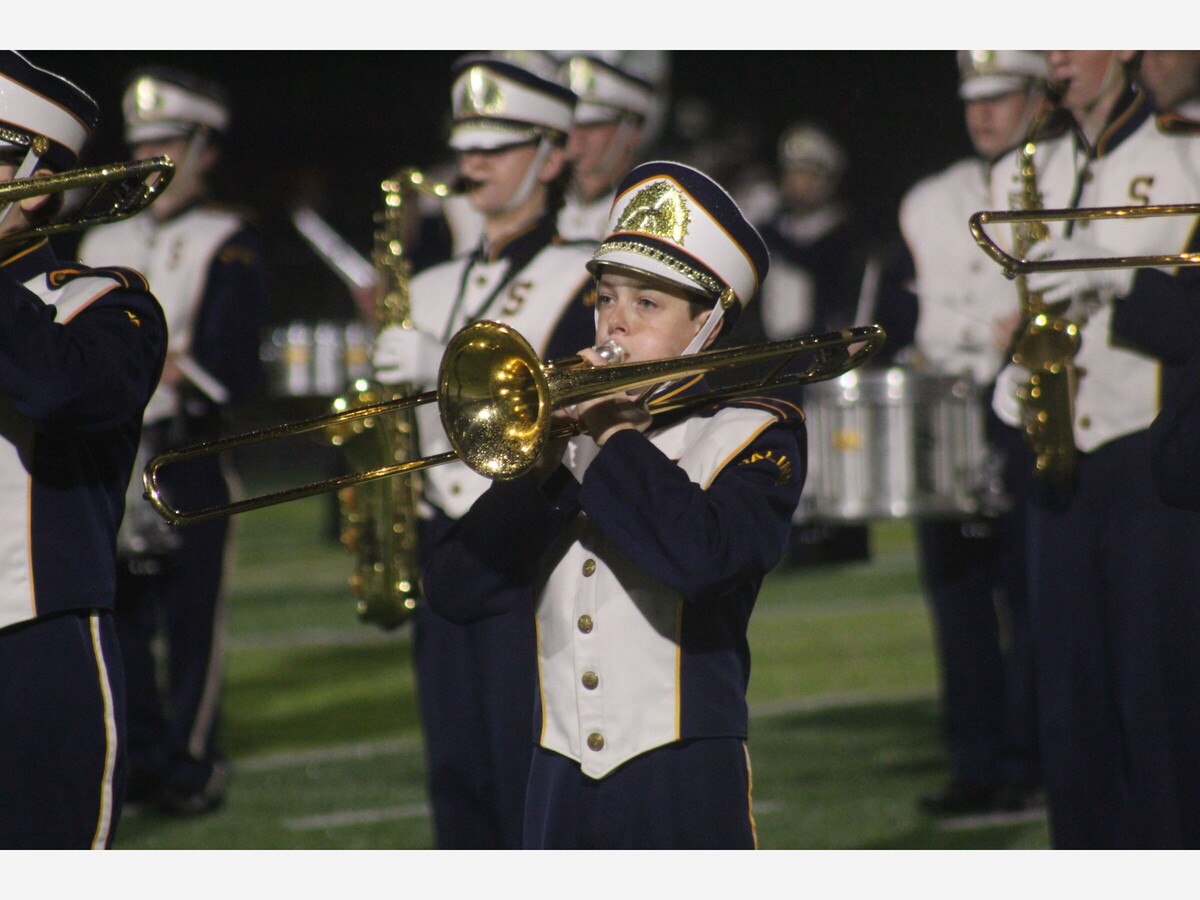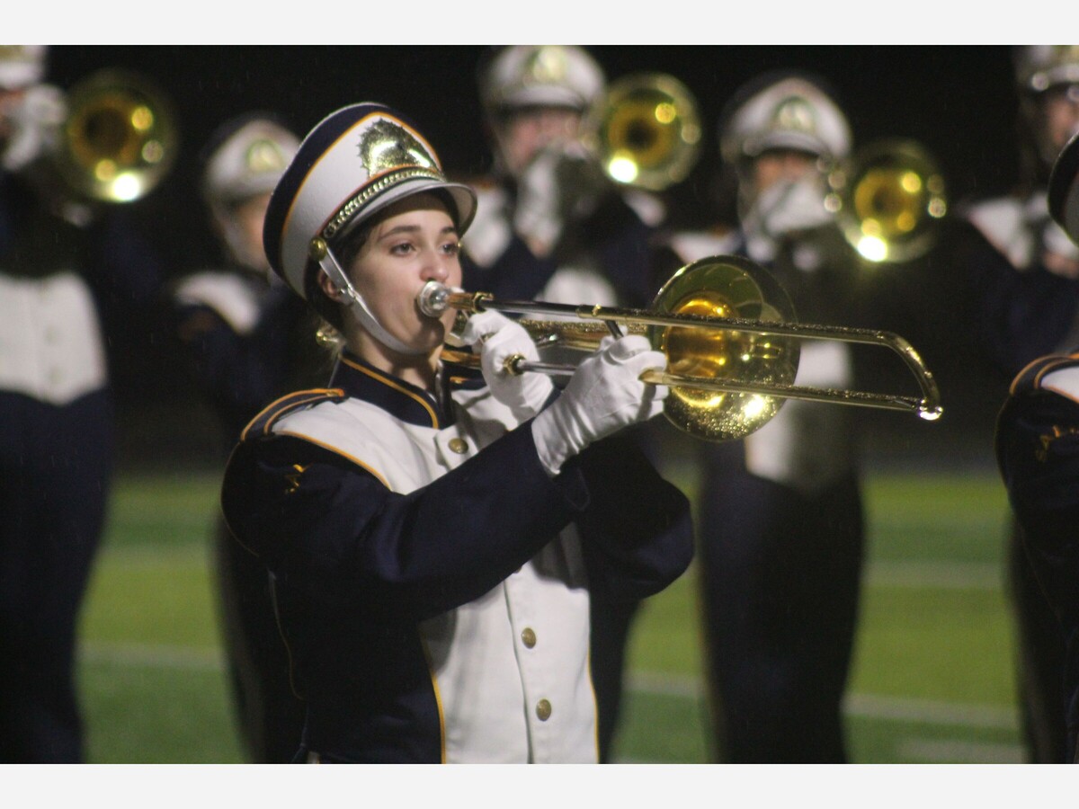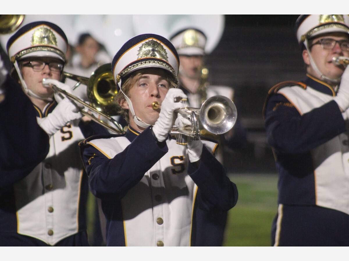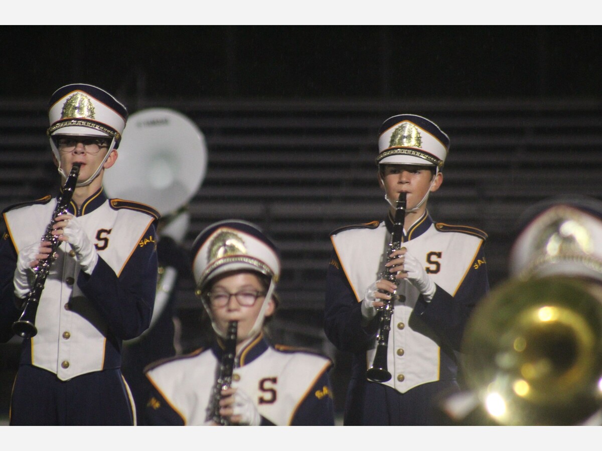 A little rain didn't stop an amazing night of marching band performances at the Chelsea Marching Band Exhibition. Fourteen marching bands from area school endured the rain to the joy of the audience. The Eastern Michigan University Marching Band closed the show in a heavy rain as the crowd cheered on. The Saline Band performed a set of songs by the King, Elvis Presley.