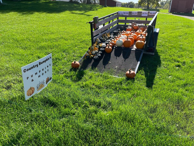 She said they had a cut out sign of a farmer and the younger kids loved putting their face into the sign and sold orange, black and white pumpkins, and gourds. They also got to talk to some other farmers who raised pumpkins for the largest pumpkin contest and will strive to enter their own large pumpkin next year.