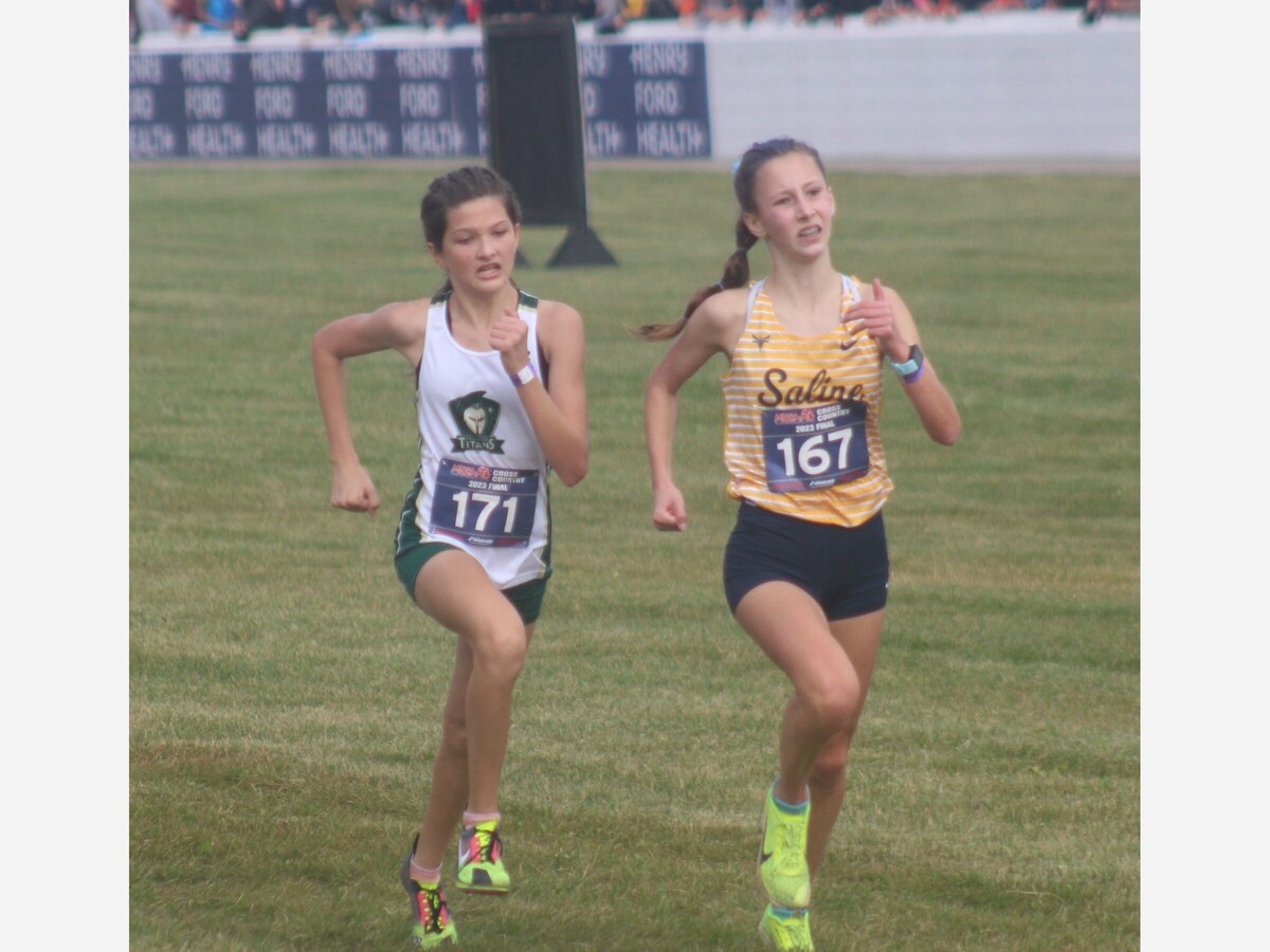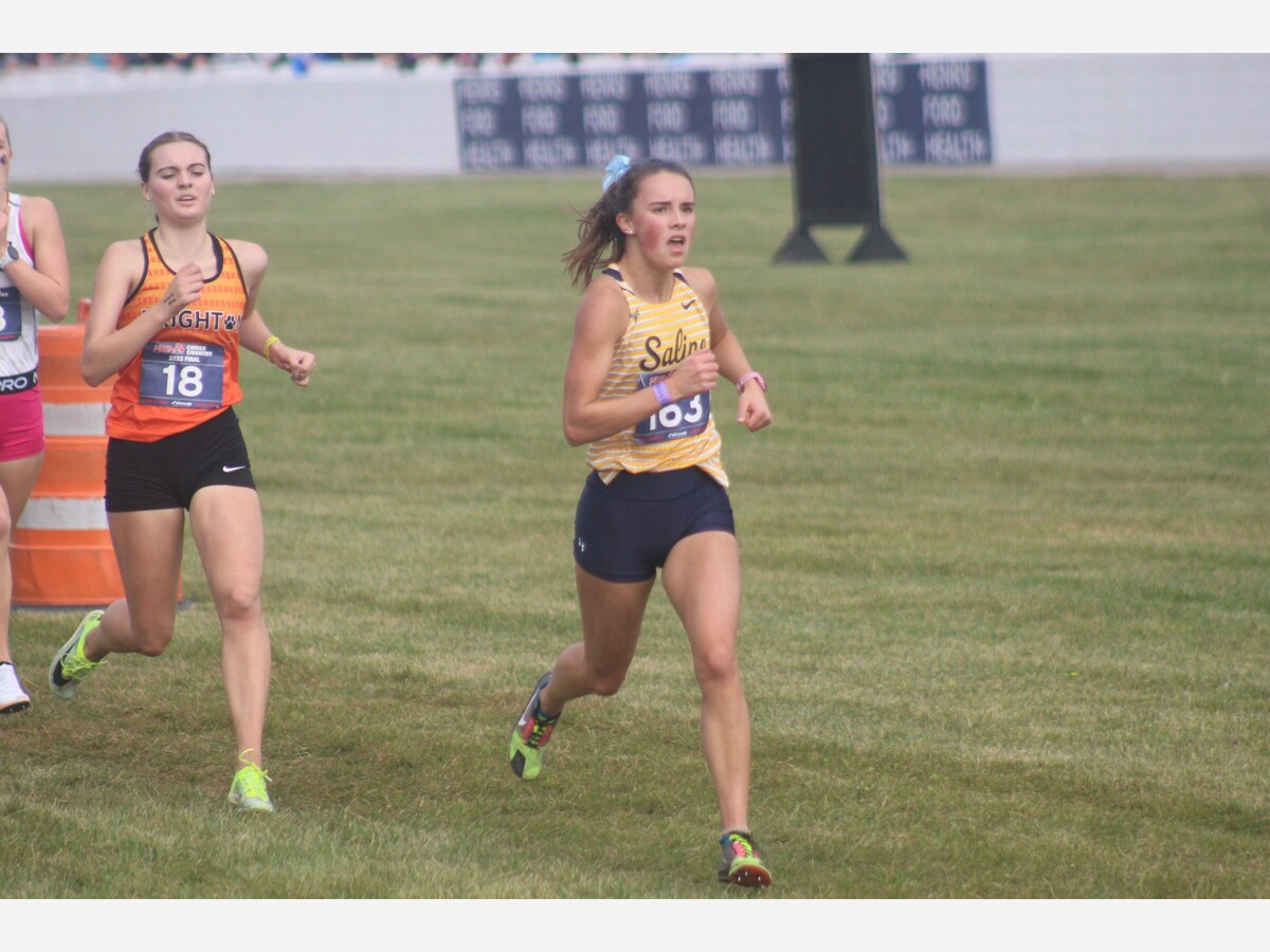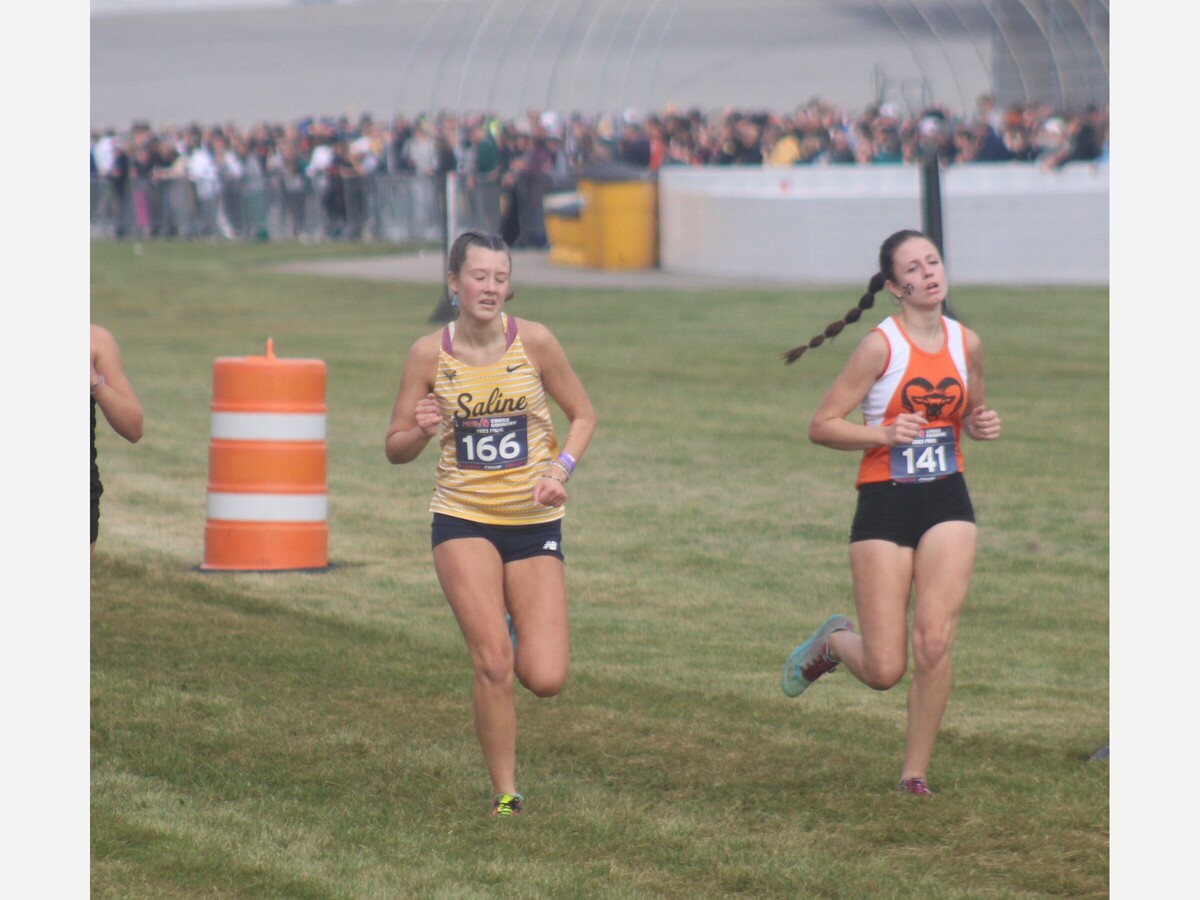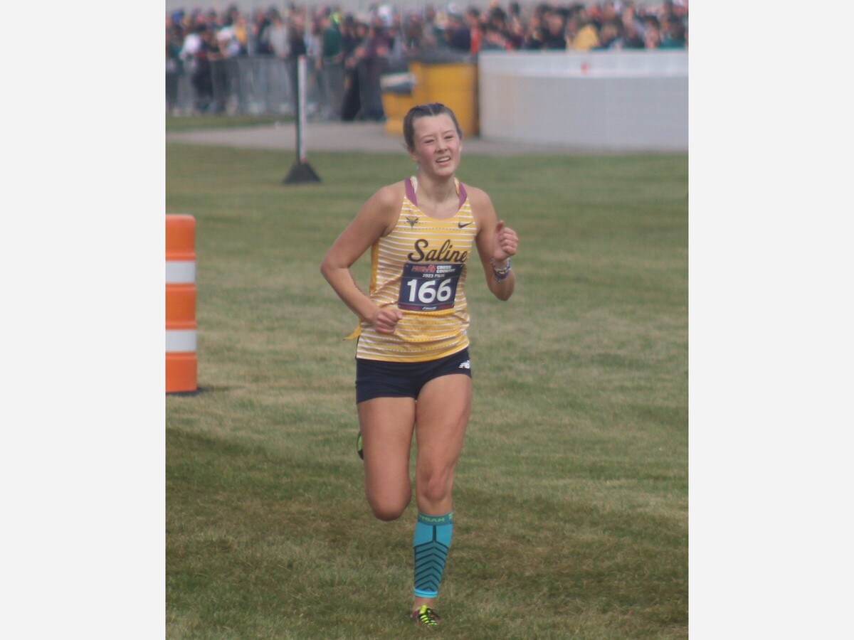Lainey Alig earned all-state honors with a 15th-place finish with a time of 18:25.2 to lead the Hornets. She finishes her career Saline career tenth on the all-time Hornets list.