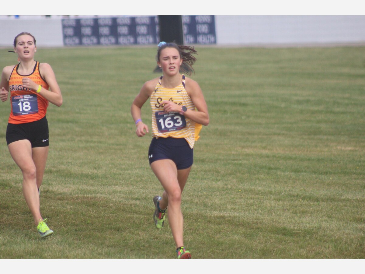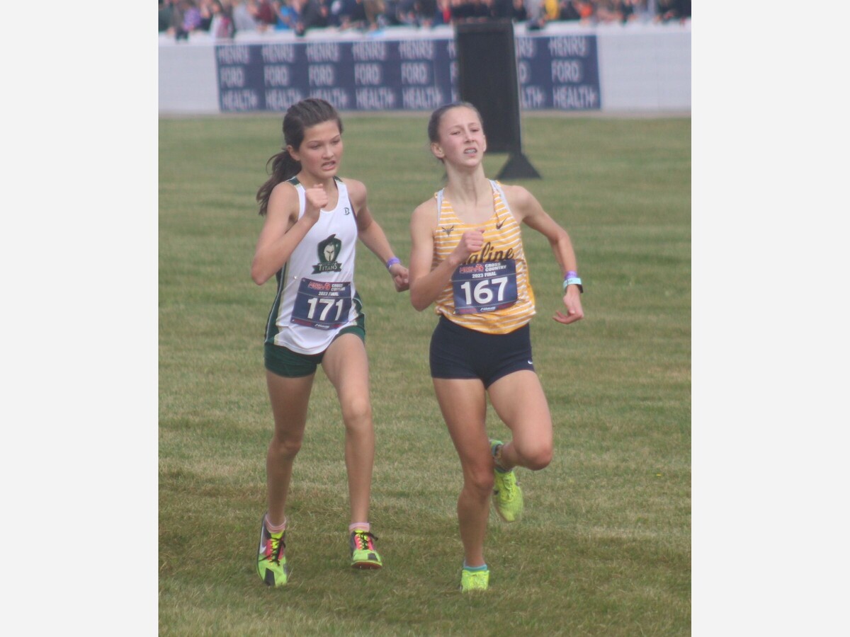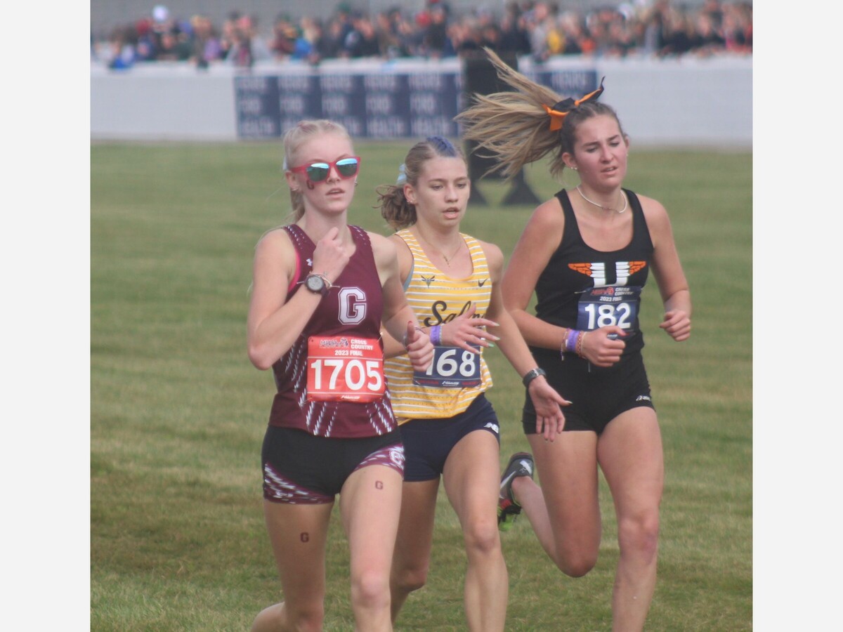 Senior Nancy Gage cot 16 seconds off her personal best time at the state finals. Photo by Mike WilliamsonCorynn Gady finished 39th in 18:51, Lillian Schlack 73rd in 19:19.9, and Sophie Roth 79th in 19:22.8.