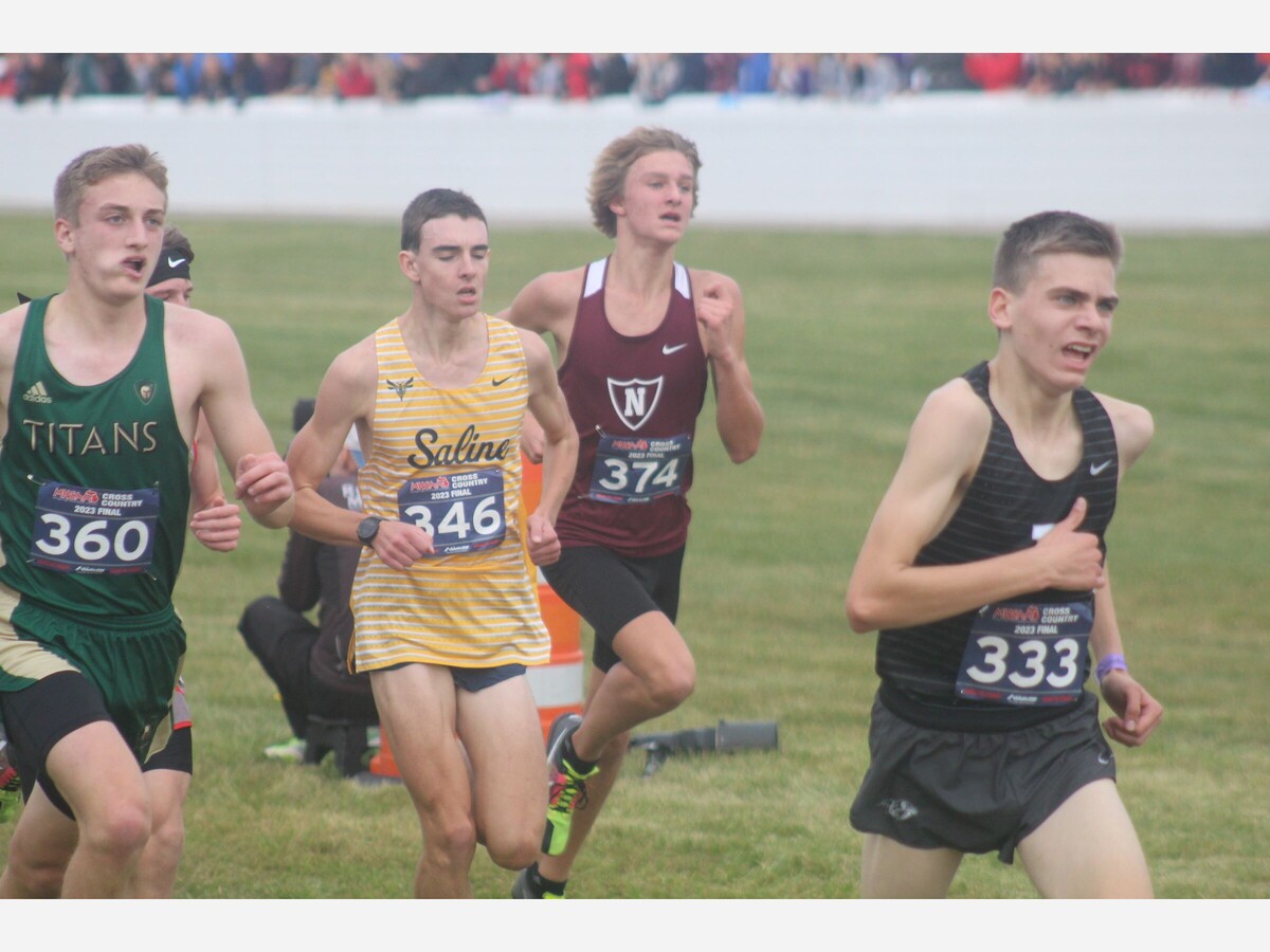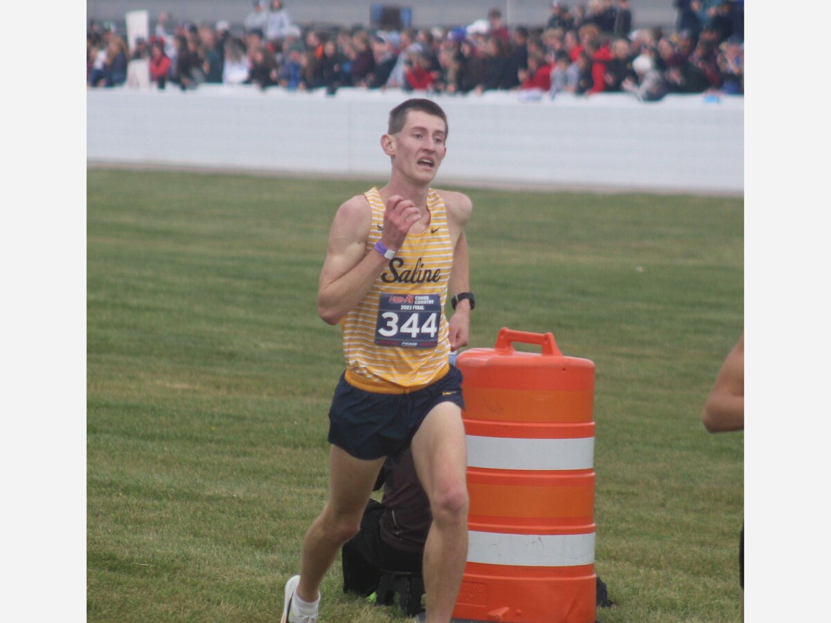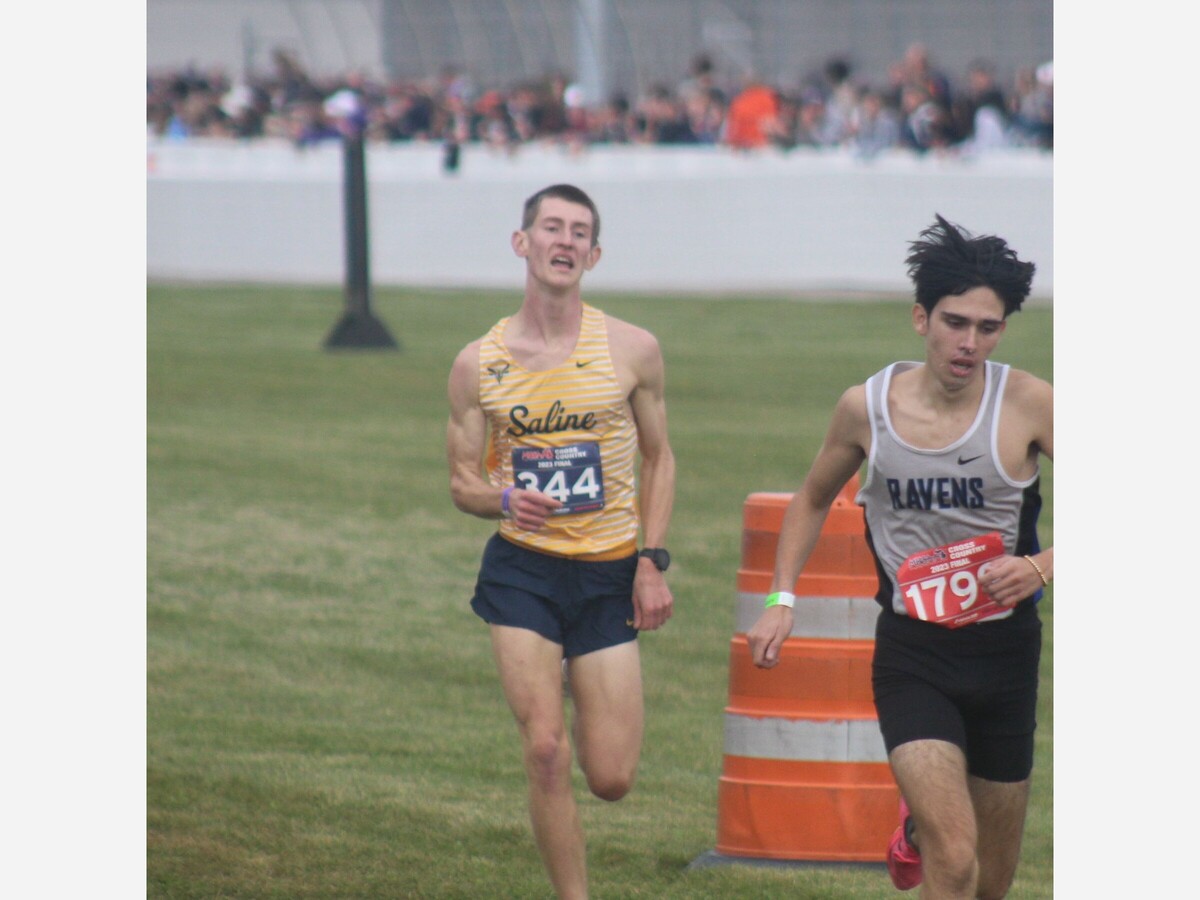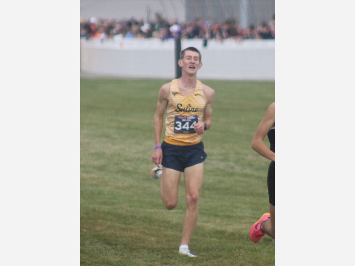 Truman Johnson finished eighth to earn all-state honors for Saline. Photo by Mike WilliamsonTruman Johnson earned all-state honors with an eighth-place finish and taking 10.1 seconds off of his personal best time to finish in 15:21 and move him up to 3rd on the Saline all-time career list in his final race as a Hornet.
