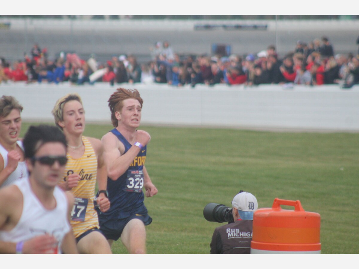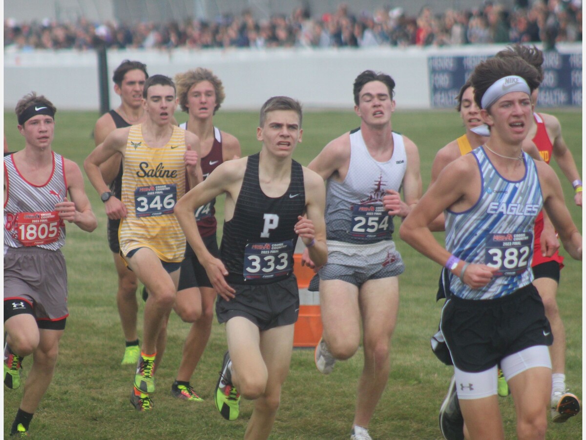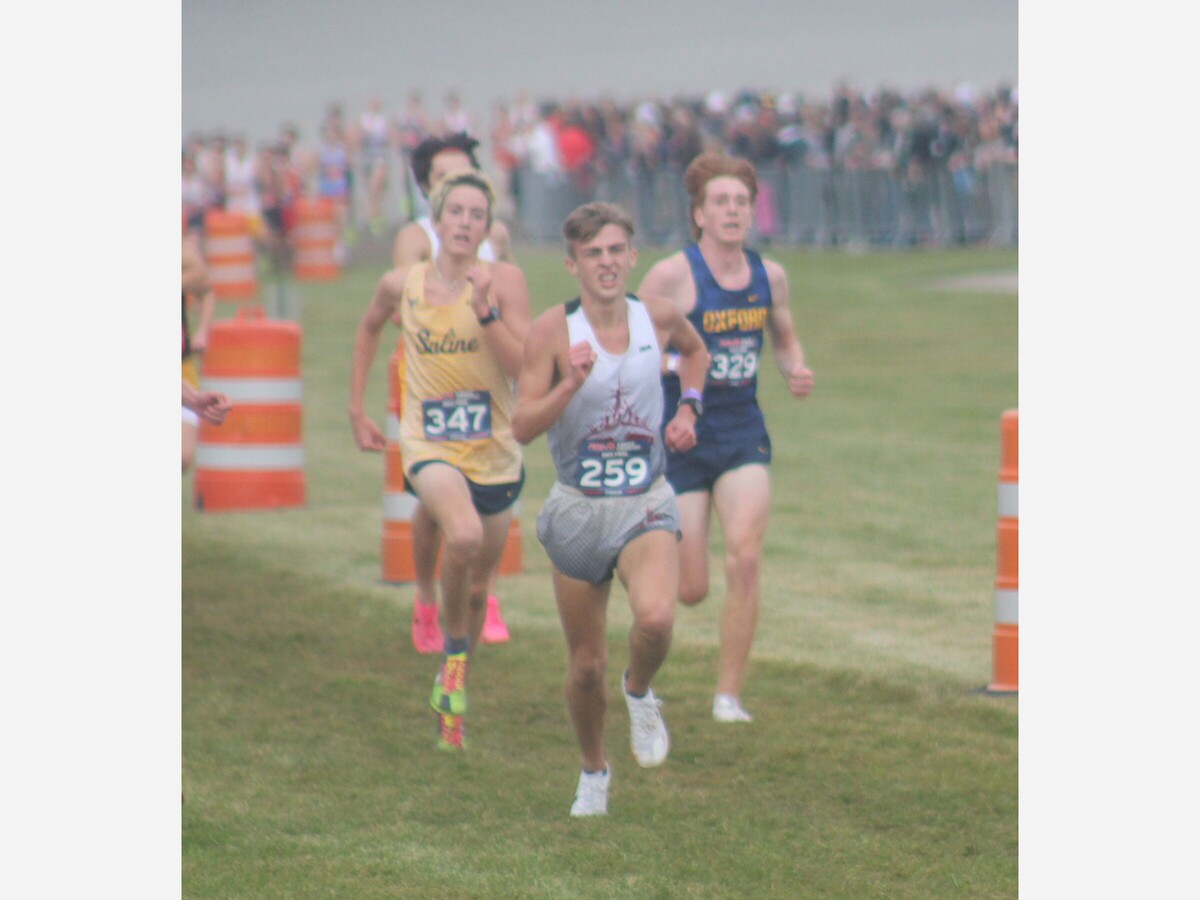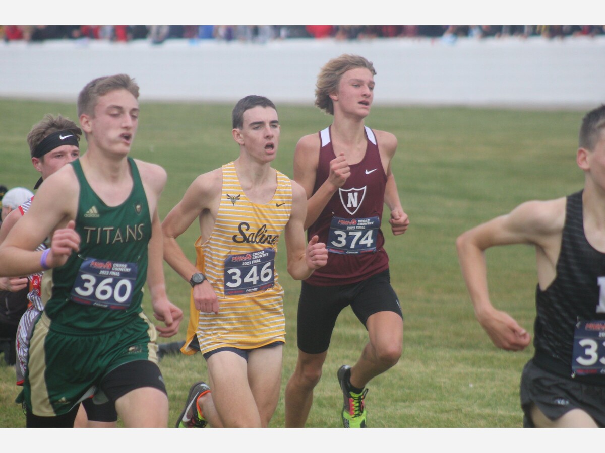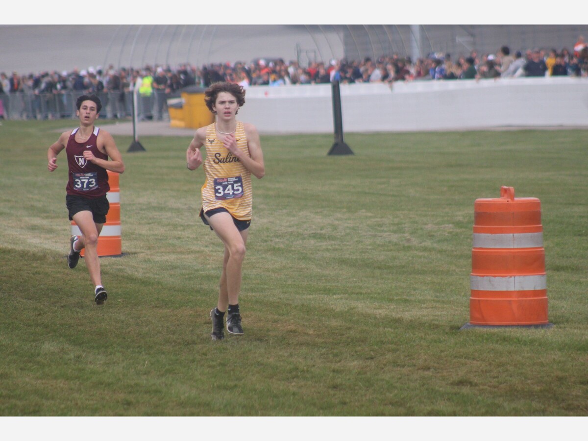 Truman Johnson finished eighth to earn all-state honors for Saline. Photo by Mike WilliamsonTruman Johnson earned all-state honors with an eighth-place finish and taking 10.1 seconds off of his personal best time to finish in 15:21 and move him up to 3rd on the Saline all-time career list in his final race as a Hornet.