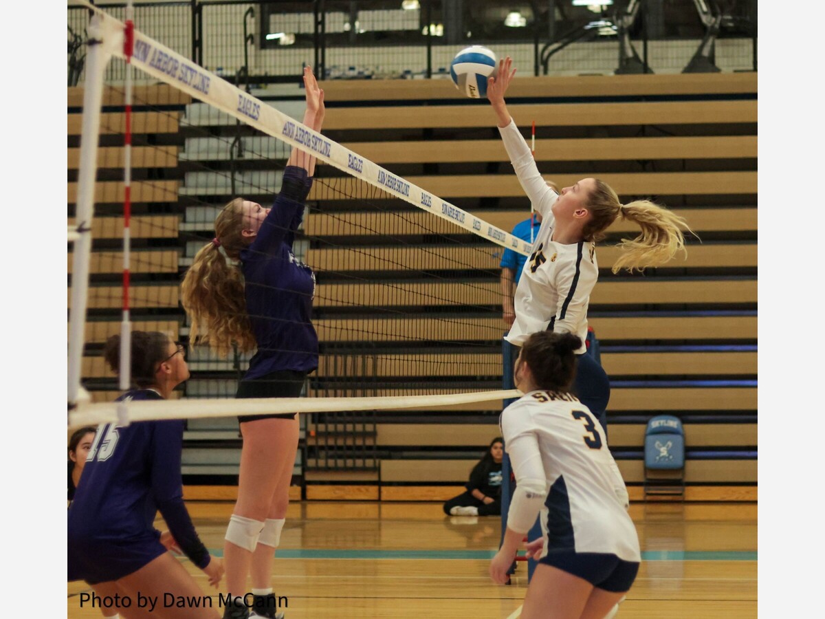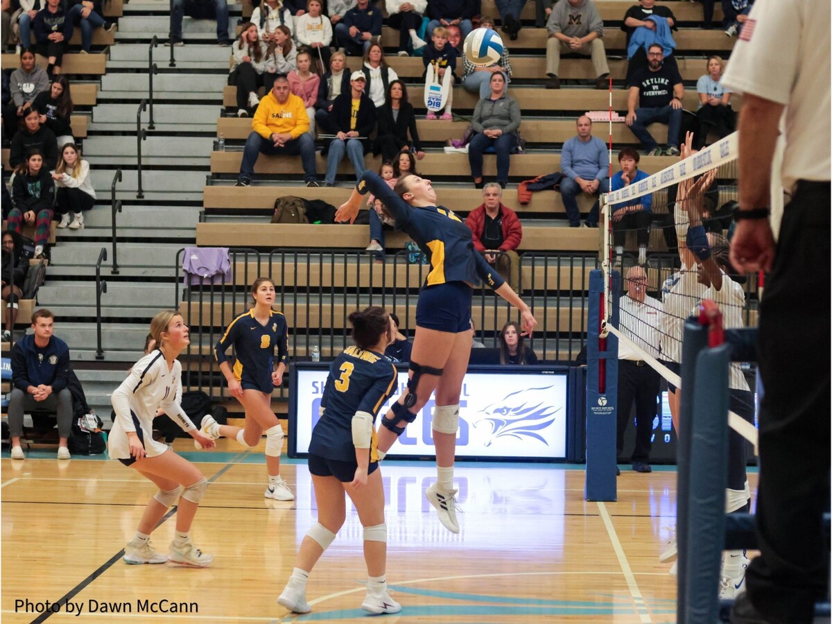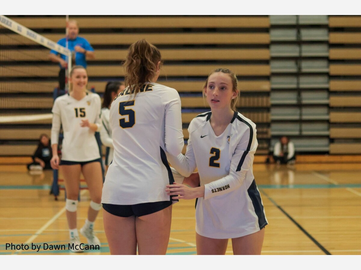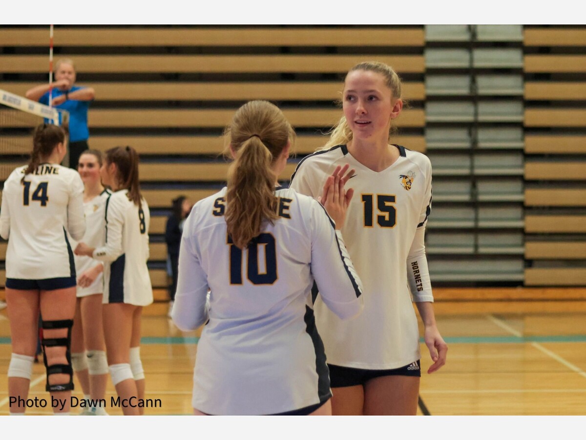 The semifinal against Skyline saw the teams tied at 22 in the first set when the Hornets scored three straight and Marie Laurio ended it with a kill for the 25-22 opening set win.