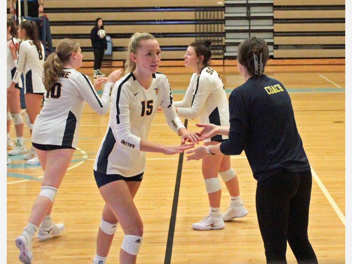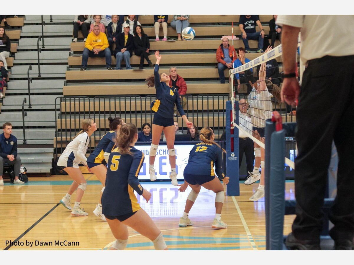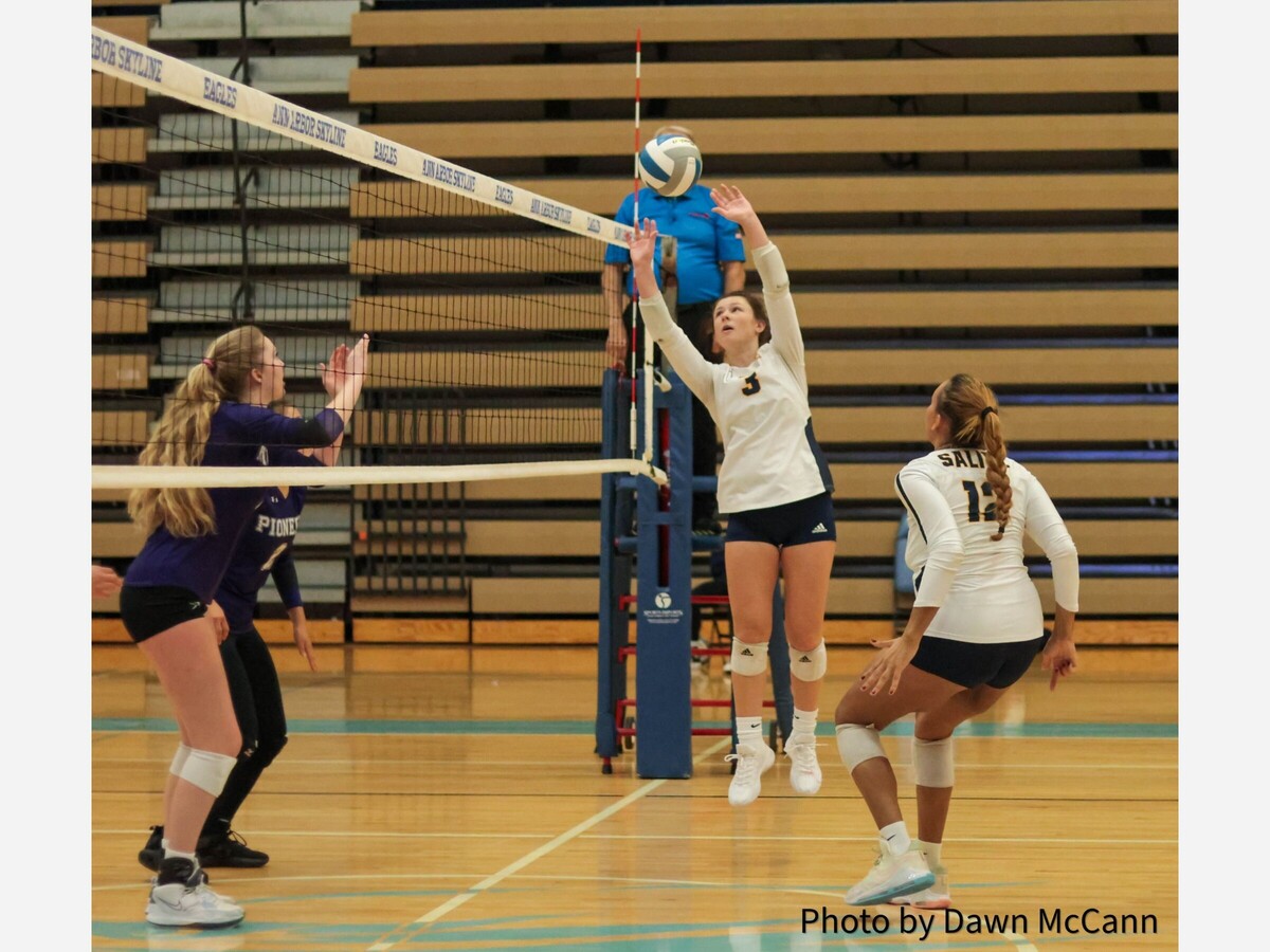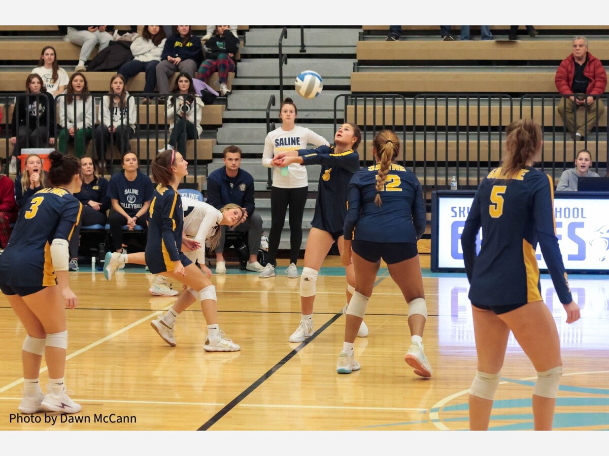 The third set was all Saline as the Hornets jumped out to an 18-5 lead before Pioneer went on a four-point run to make it 18-9. Saline answered to push the lead to 24-11 and Rylee Bero closed out the match with an ace.