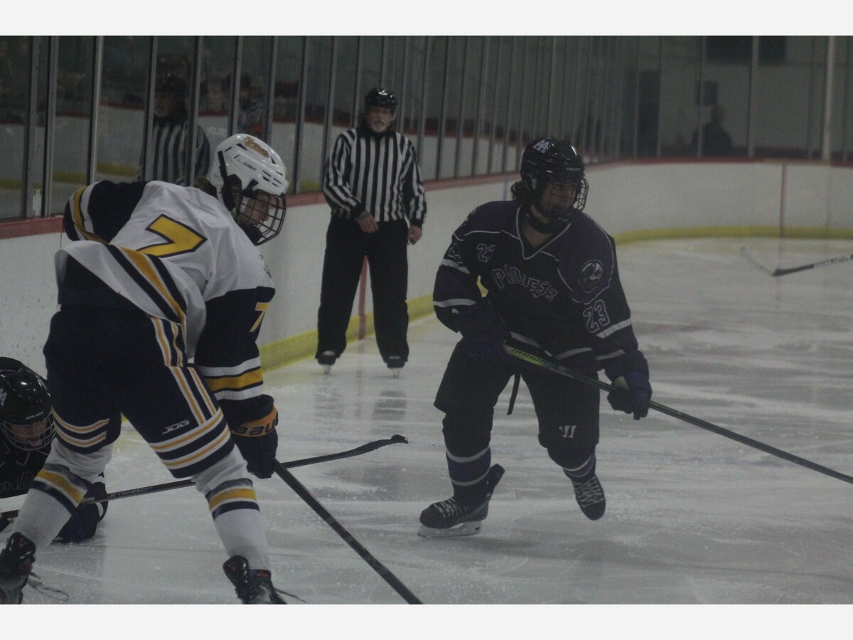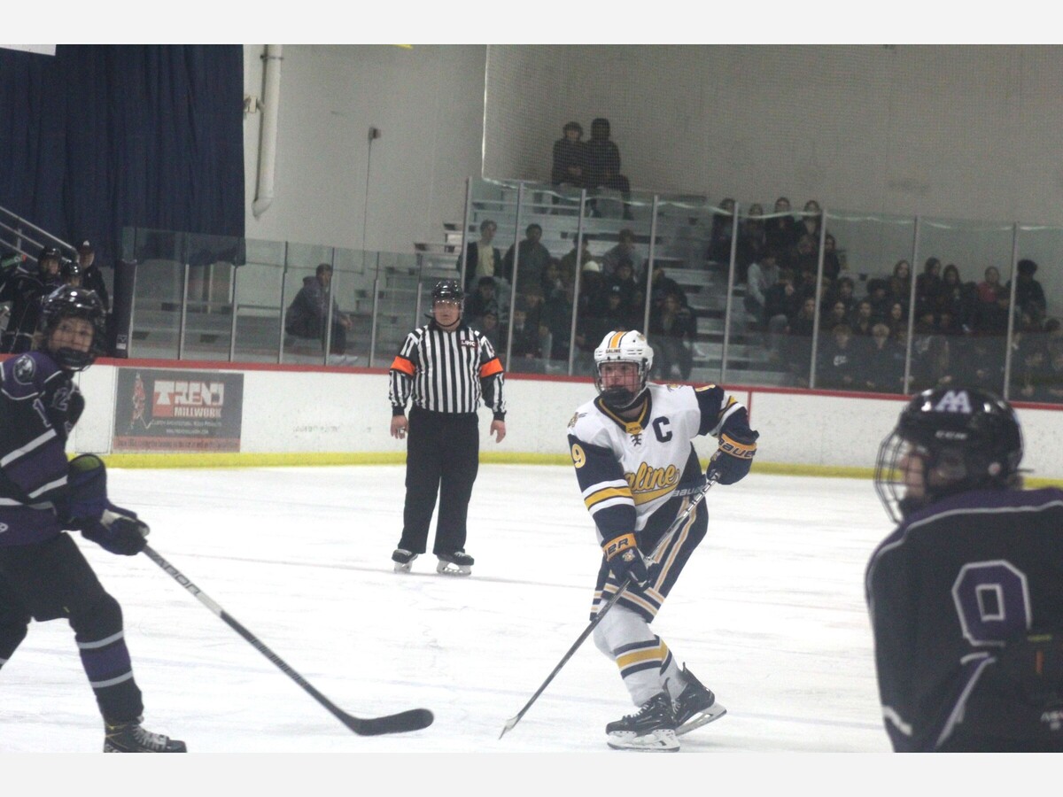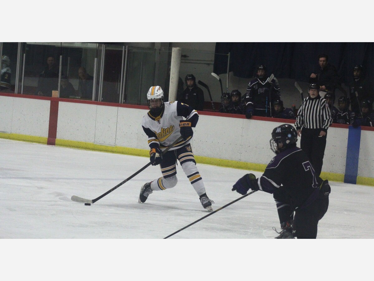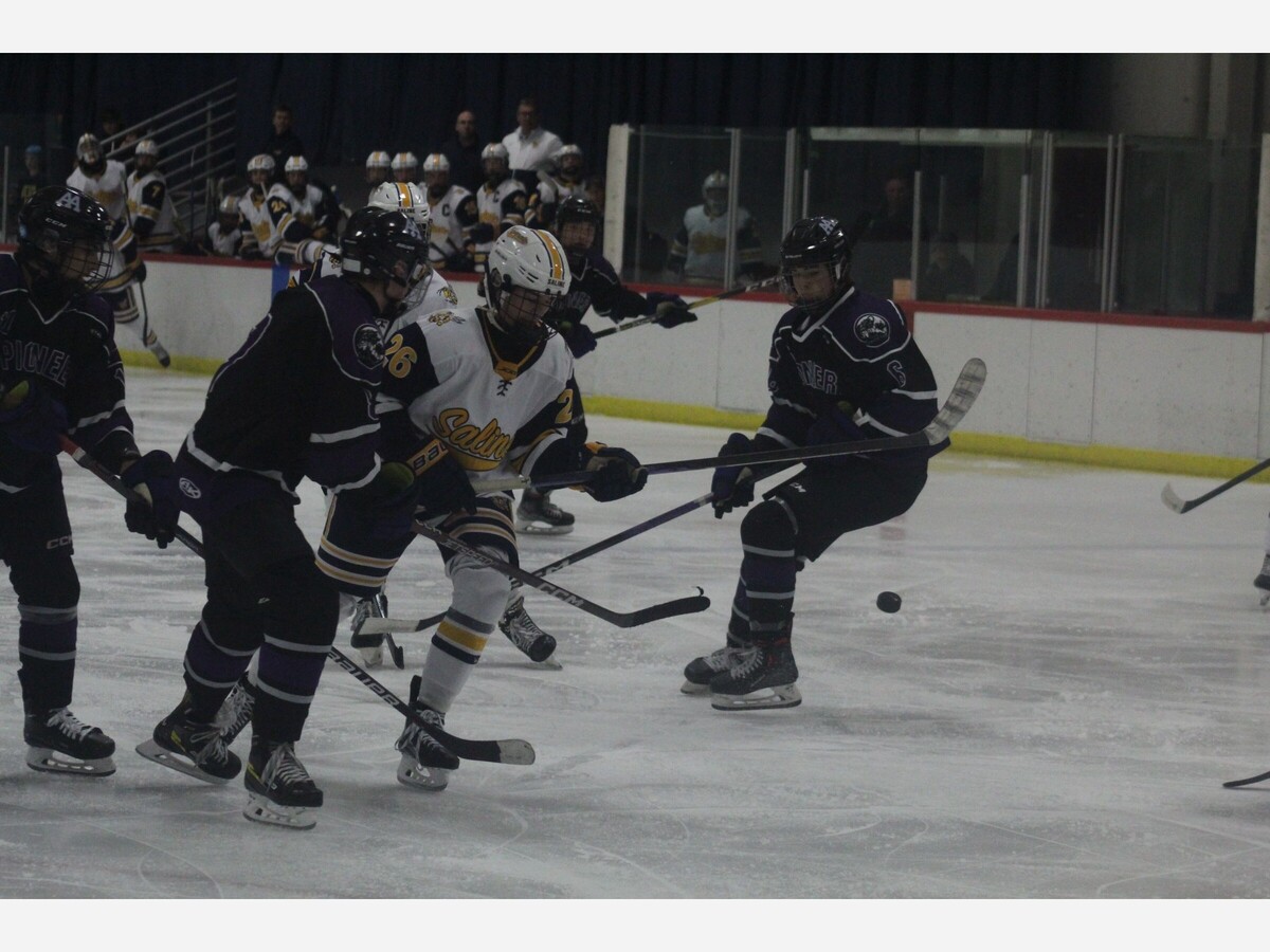 Midway through the overtime period Stevenson won a face-off deep in the Saline zone and a shot from the blue line was blocked out front right to a Stevenson forward who slapped it home for the game winner.