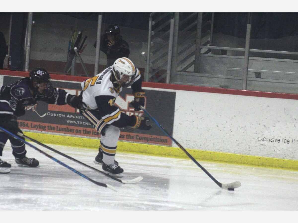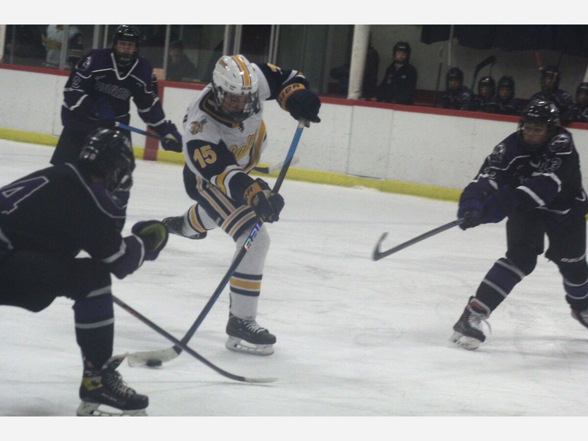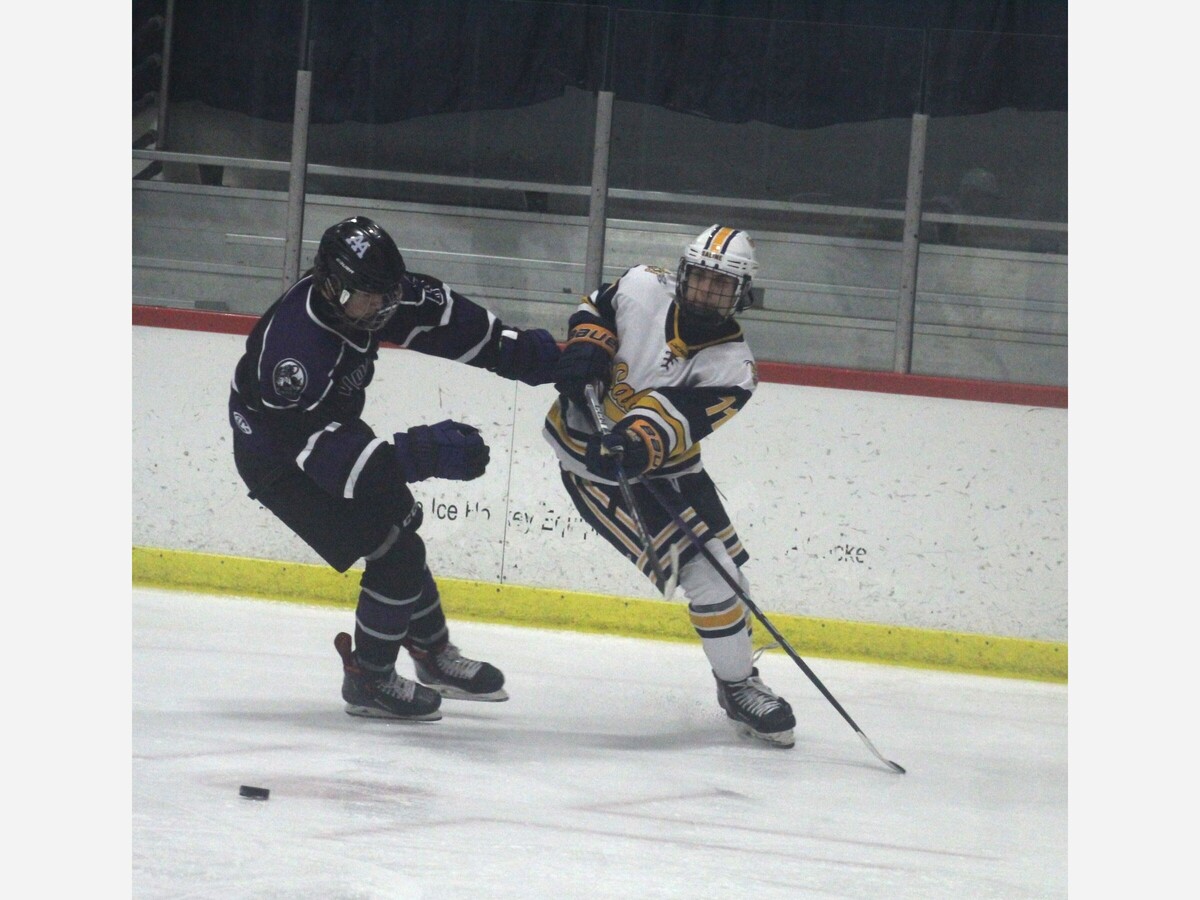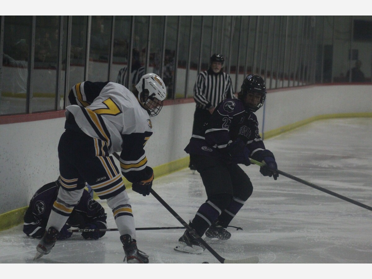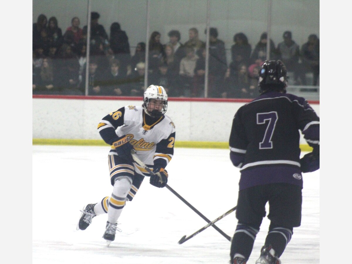 Midway through the overtime period Stevenson won a face-off deep in the Saline zone and a shot from the blue line was blocked out front right to a Stevenson forward who slapped it home for the game winner.
