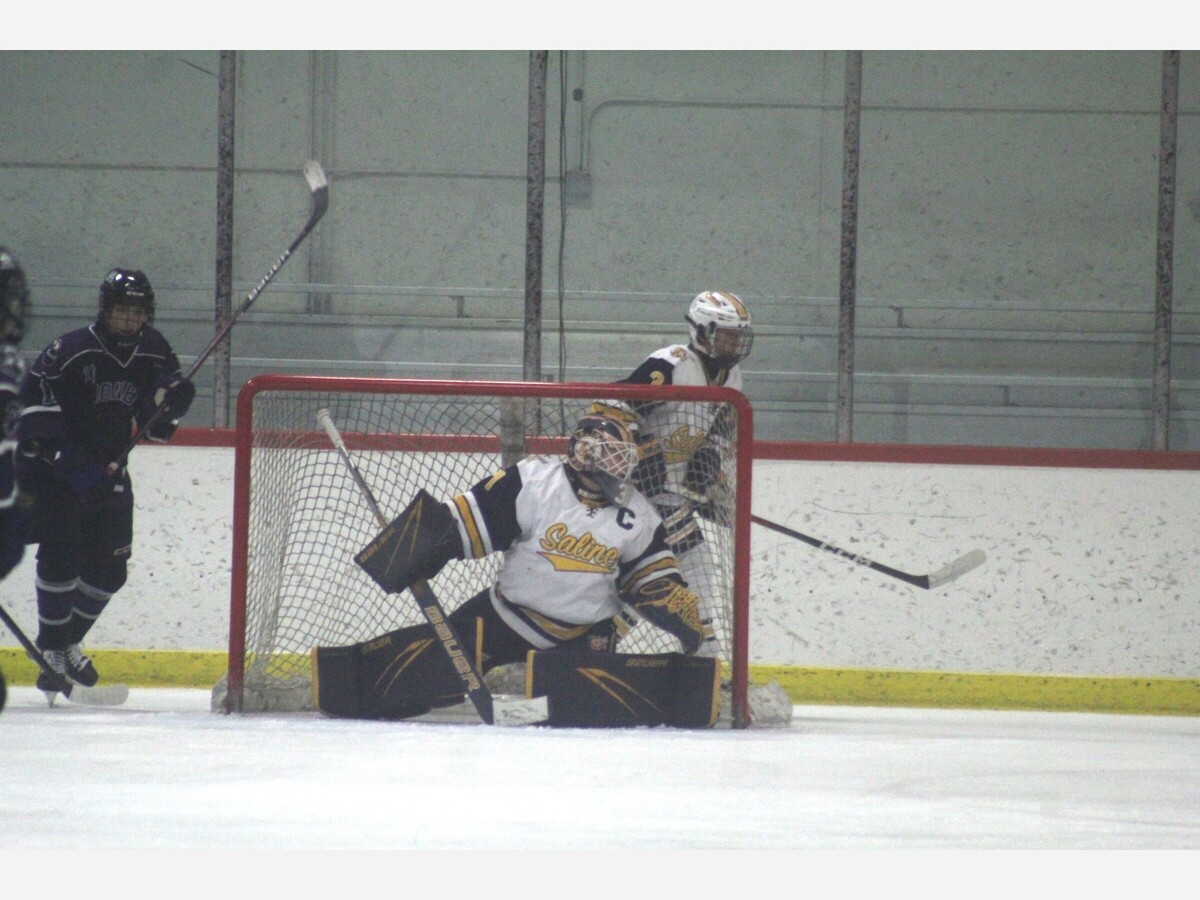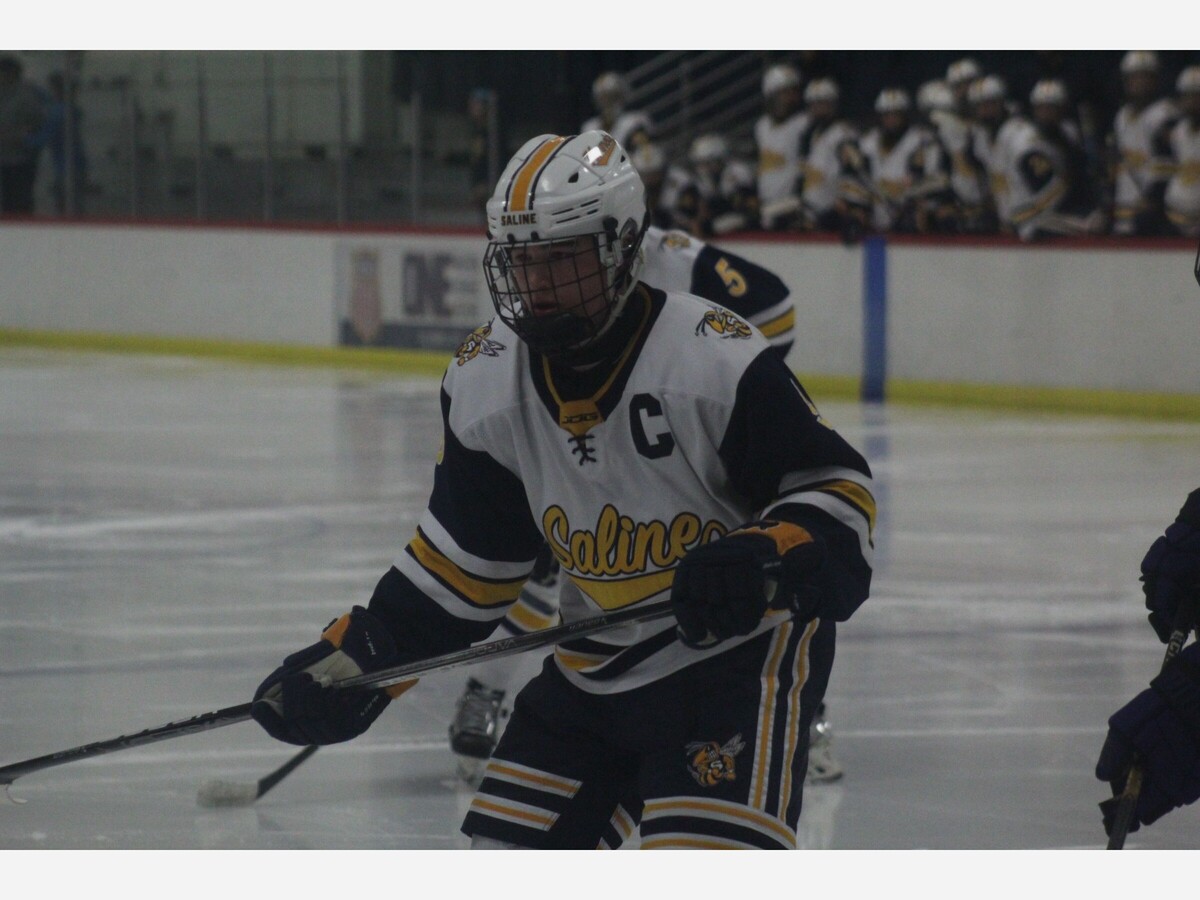 Saline was outshot 34-23 with Tyler Schroeder stopping 32 shots in net for the Hornets.
