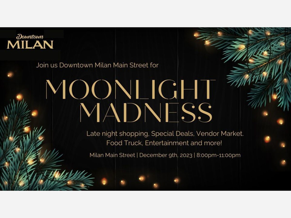 On December 9th, from 8:00 to 11:00 p.m., downtown Milan will pulsate with the lively spirit of the Holiday Moonlight Madness event. This enchanting evening, a much-anticipated sequel to its inaugural iteration, promises a festive blend of shopping, entertainment, and community spirit under the soft glow of the moon, or clouds, or snowflakes.