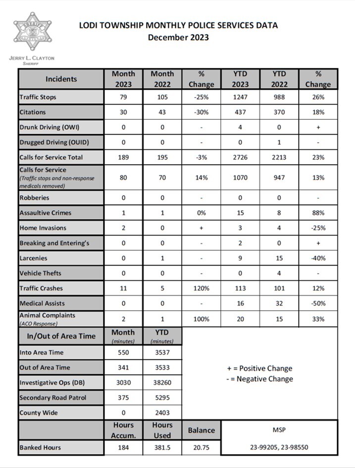 The Washtenaw County Sheriff’s Office reported the following details to Lodi Twp:
