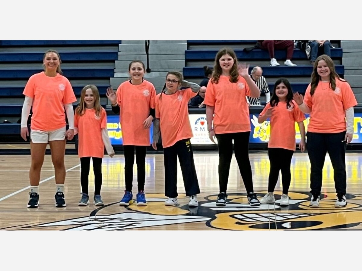 Friday night was Junior Hornet night. From June to January, the Varsity Girls Basketball Team became mentors to young basketball players that wanted to make a commitment to basketball. In the Junior Hornet Program, 23 youth athletes ages 6 - 14 years old set a goal of playing 2000 minutes of basketball. These Junior Hornets were matched up with a mentor that supported them throughout their journey to attain their goal. Mentors and mentees wrote letters to each other to build relationships and inspiration at the same time they put the work in to build their games.