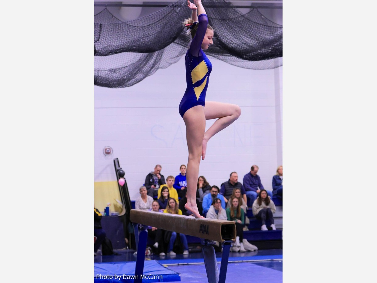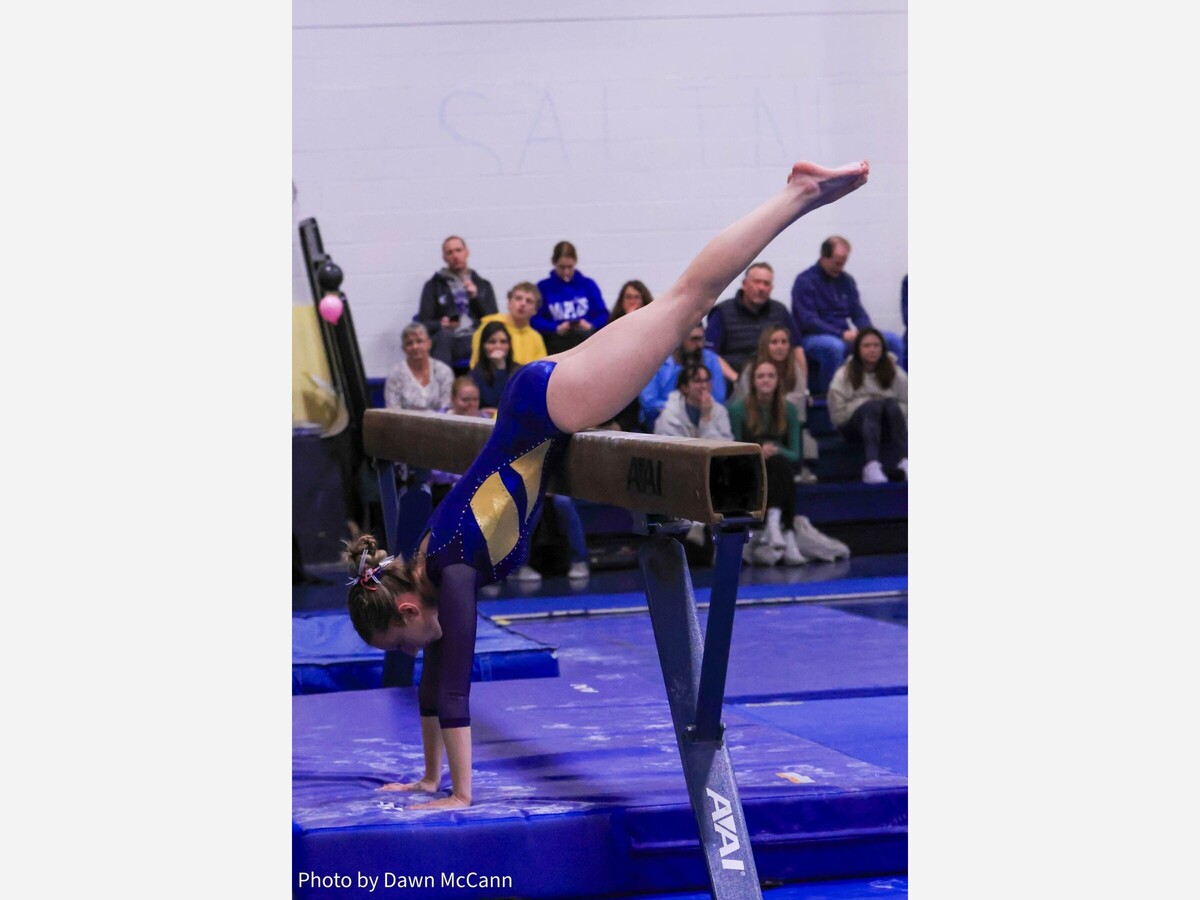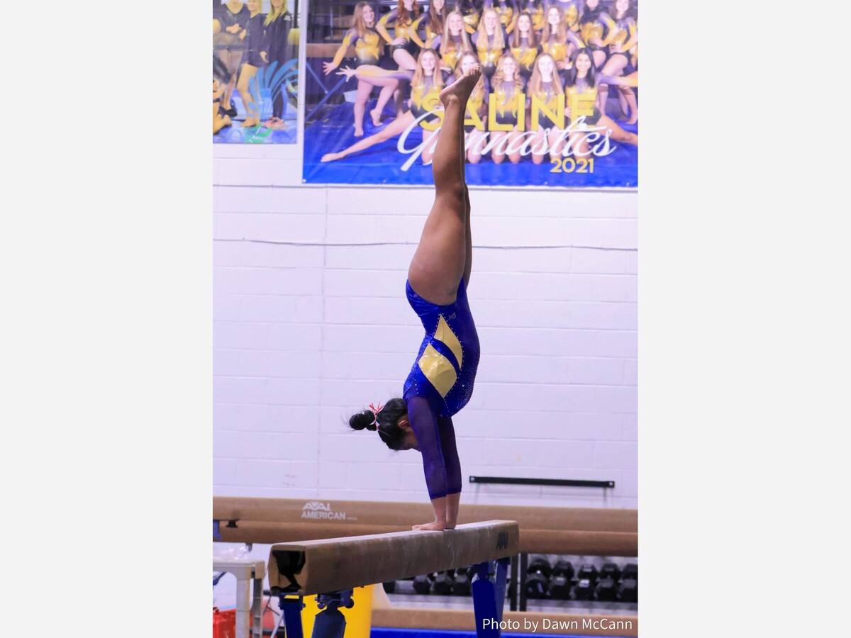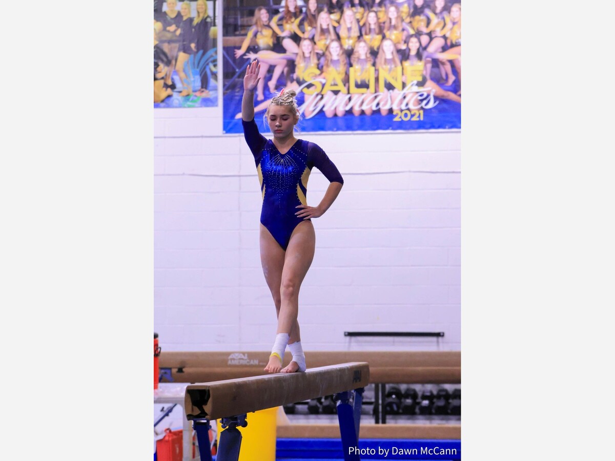 The Saline gymnastics team improved to 2-1 in the SCGL after taking down Adrian 130.025-124.450 last week.