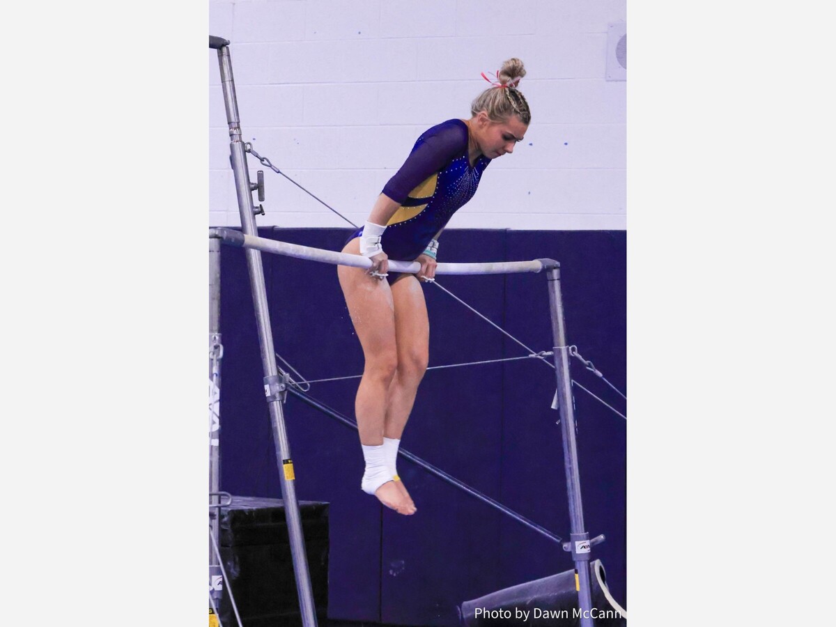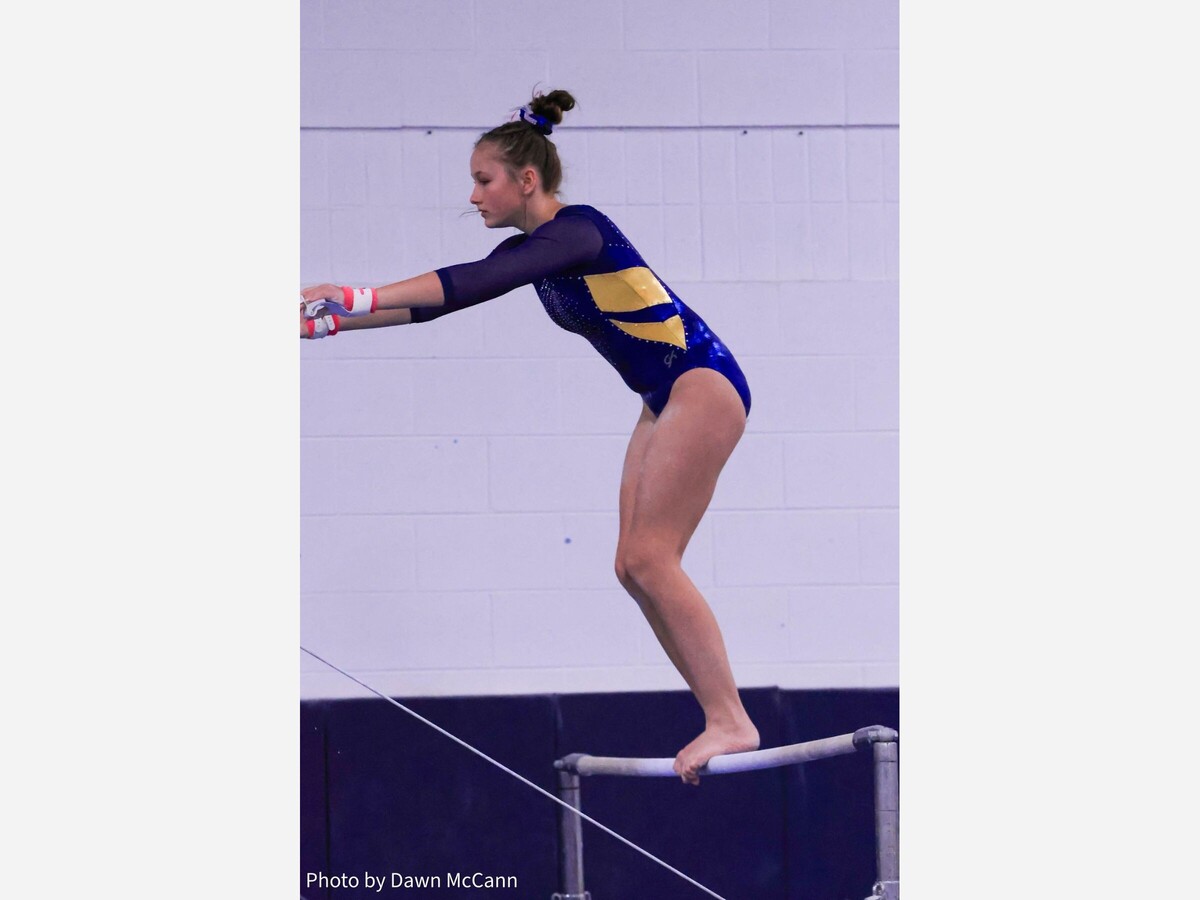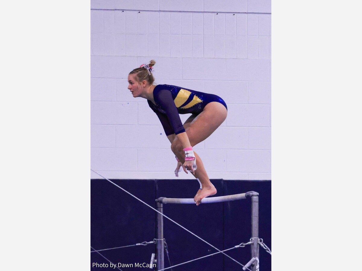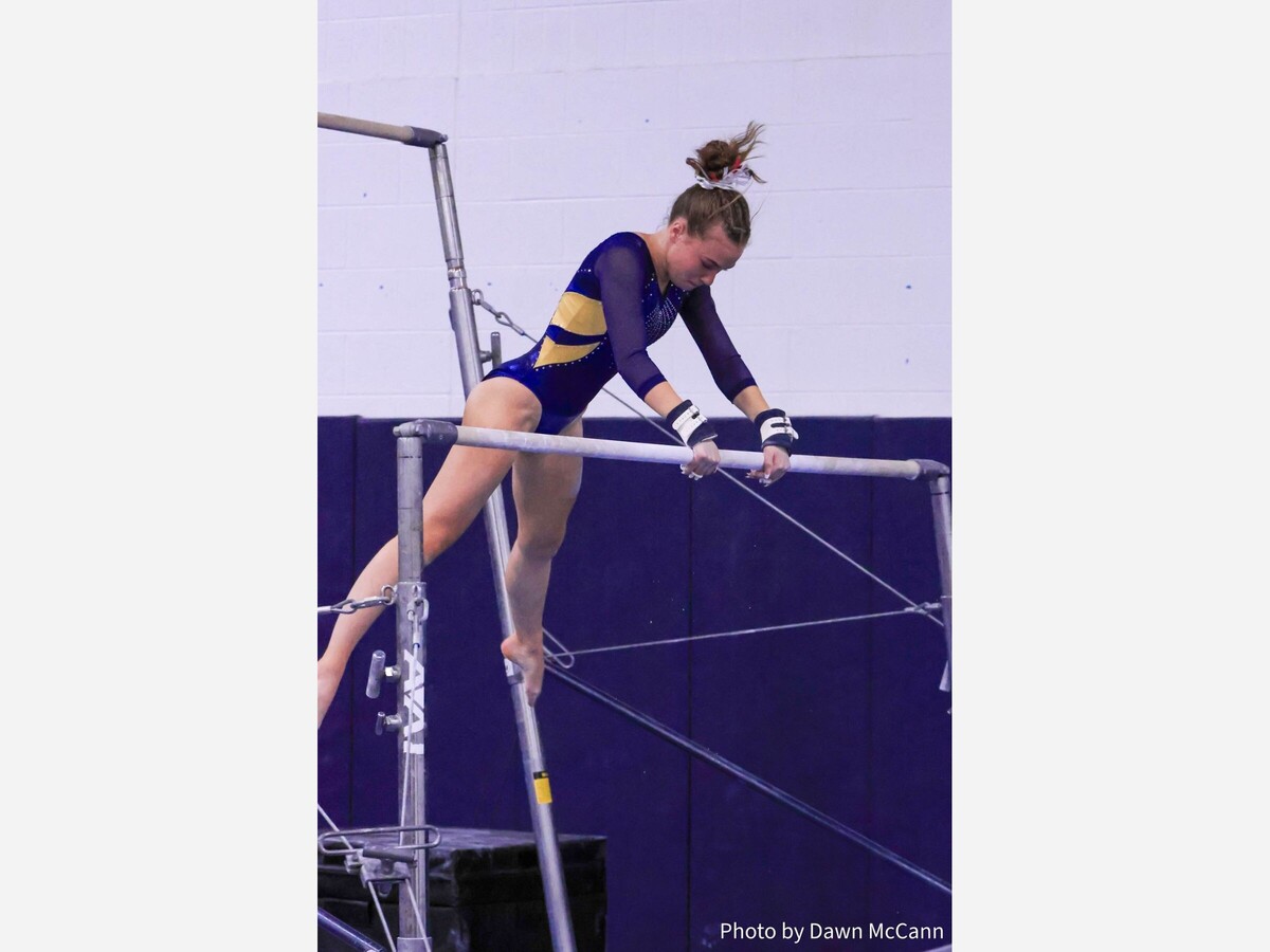 Phoebe Ward earned the Hornets other top four finish with a third-place finish in the bars with a score of 7.425.