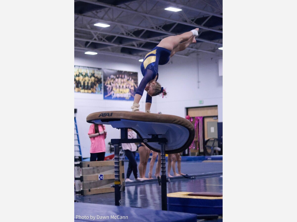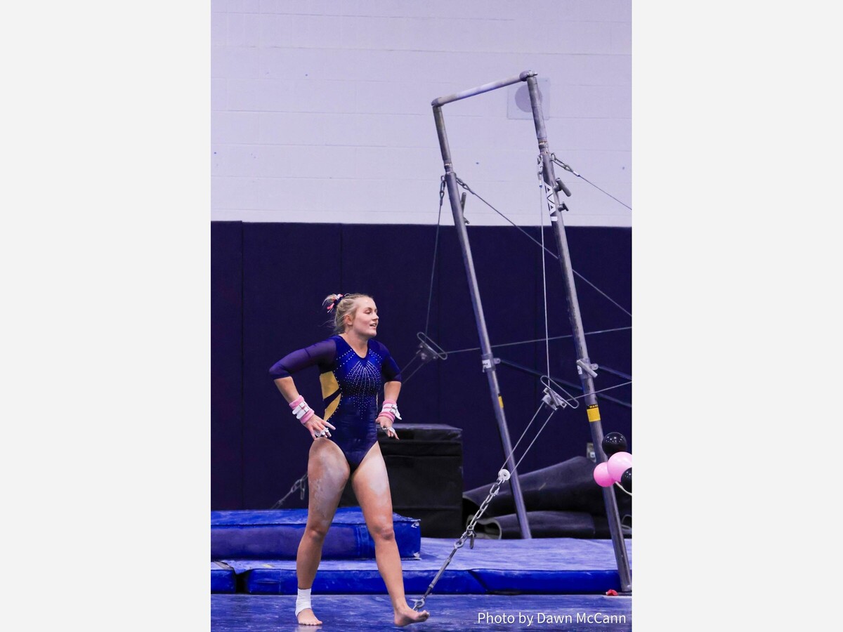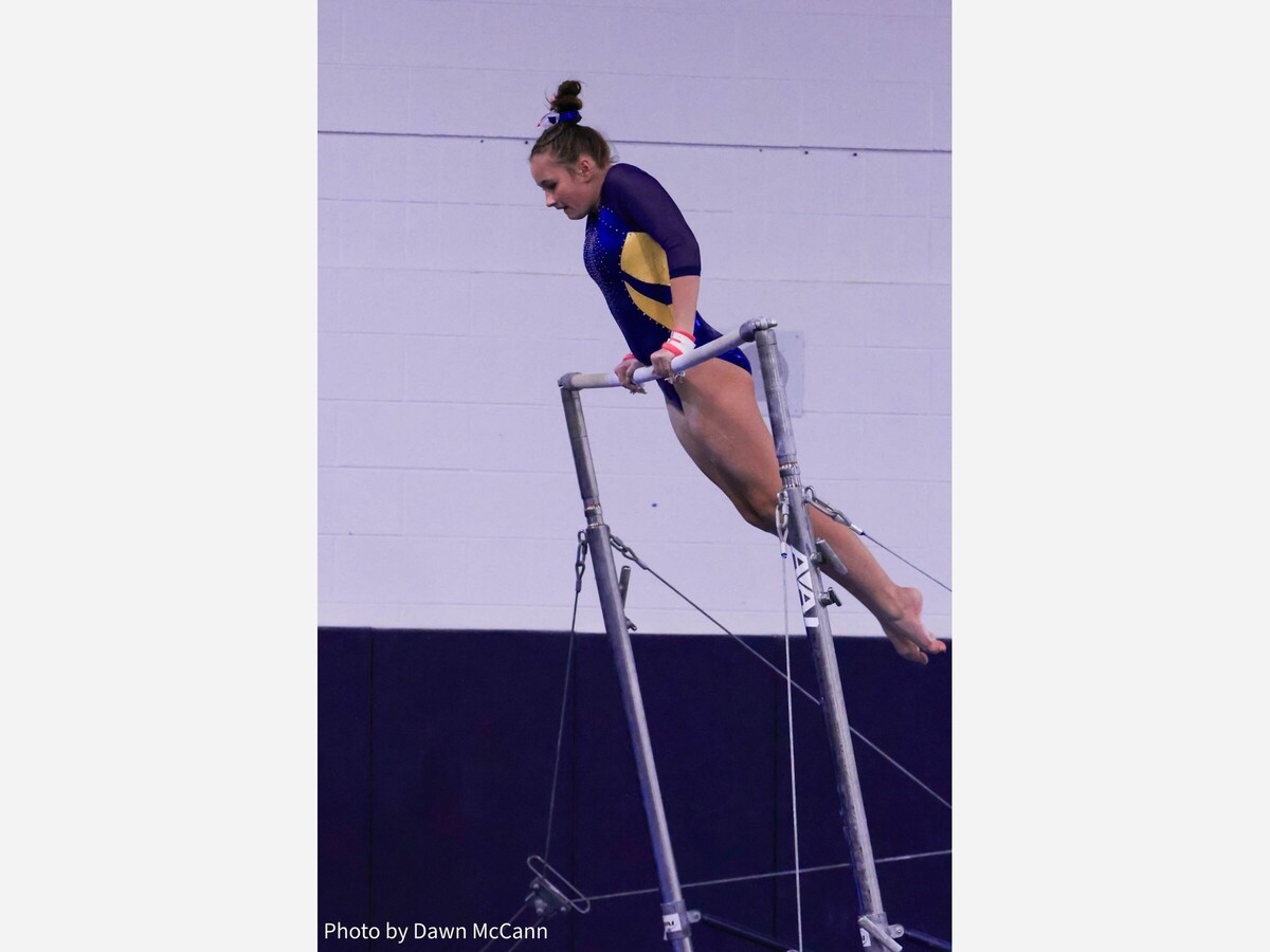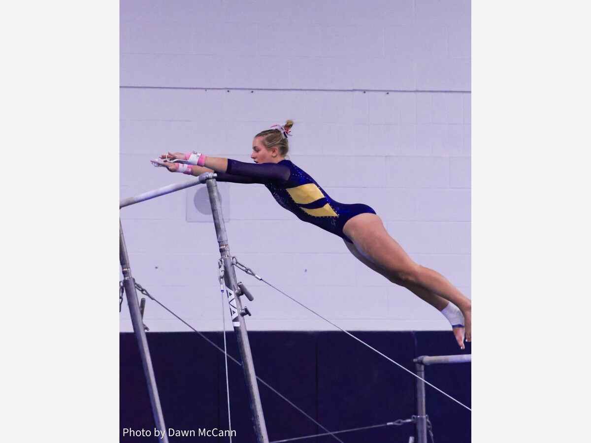 Phoebe Ward earned the Hornets other top four finish with a third-place finish in the bars with a score of 7.425.