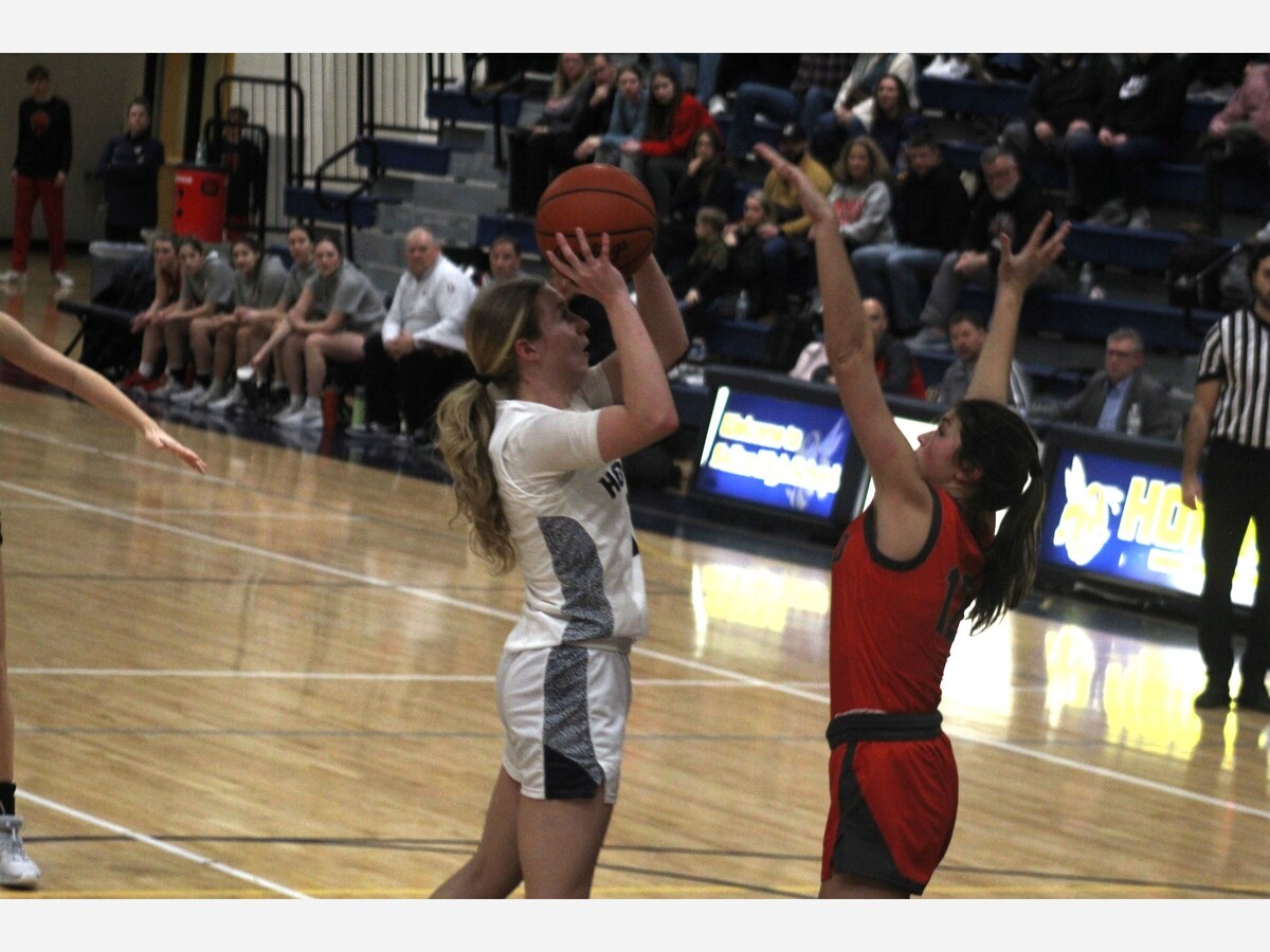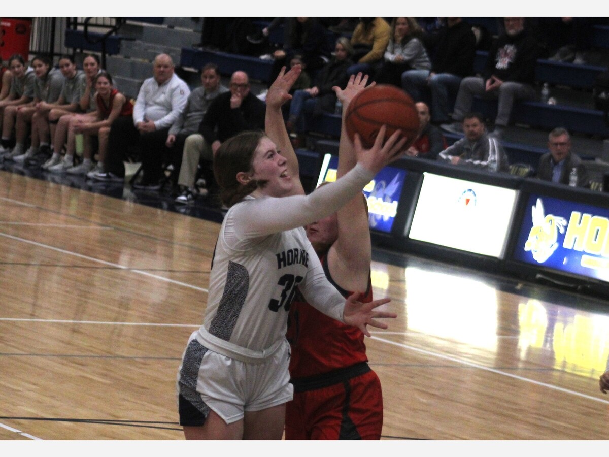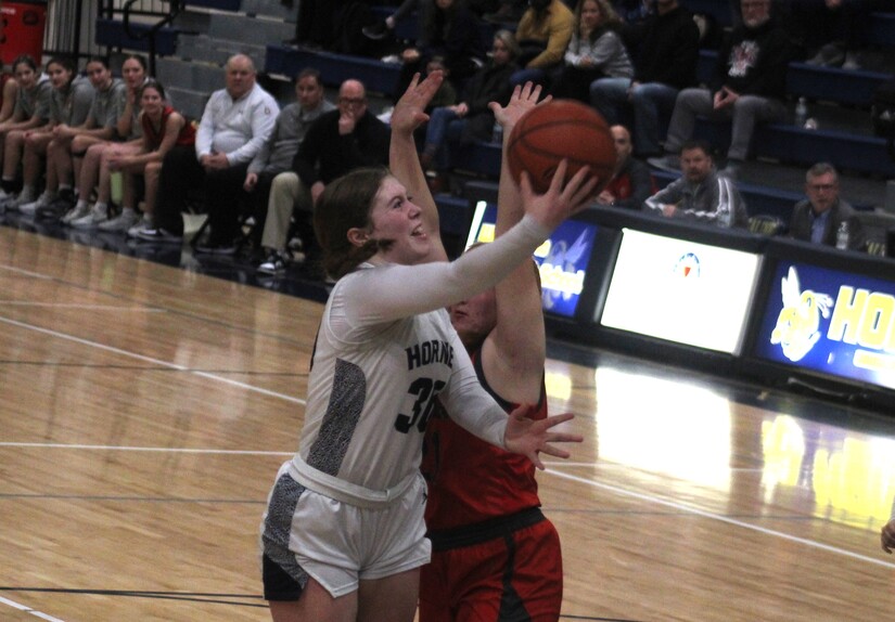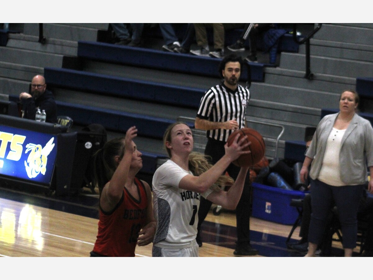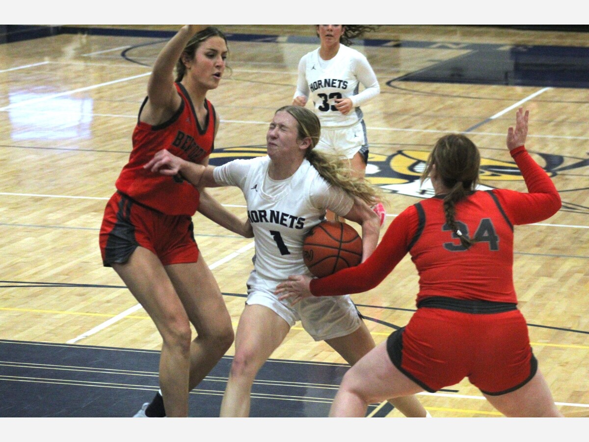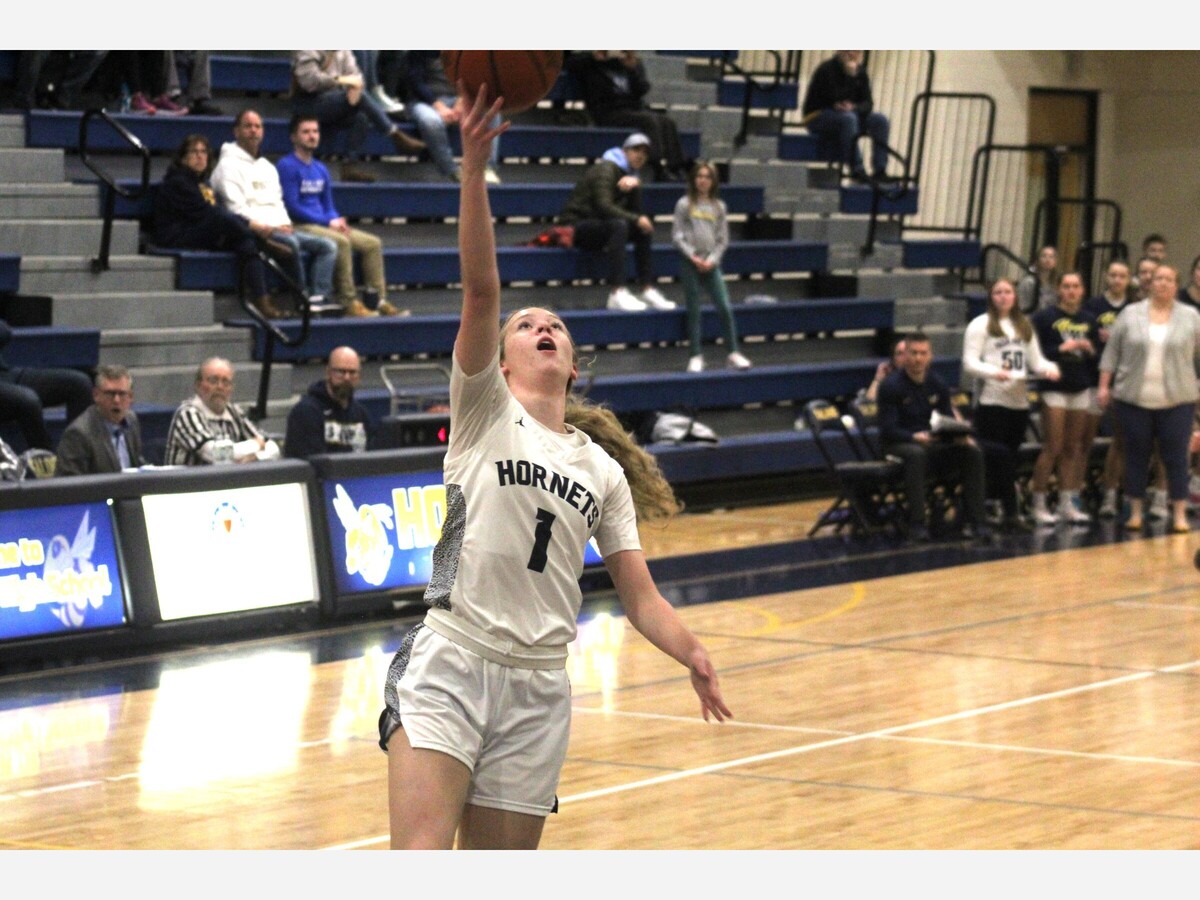 Things did not start well for the Hornets with Bedford scoring the first nine points of the game, but Saline answered with a Keira Roehm triple and baskets by Kate Stemmer and Kadyn Maida to cut the lead to 9-7. Bedford would hold an 11-10 lead after one.
