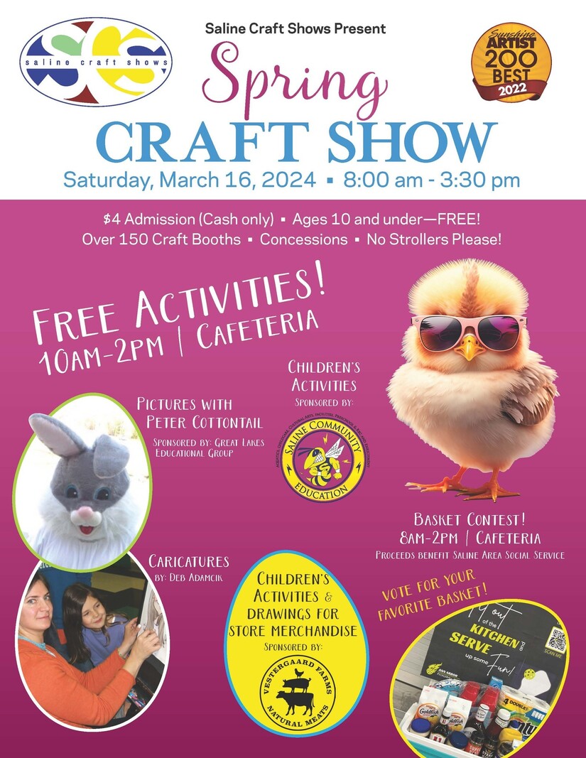 The Saline Spring Craft Show is one of Michigan’s premier craft exhibitions, showcasing the work of talented crafters from around the Midwest. Here's what you can expect: