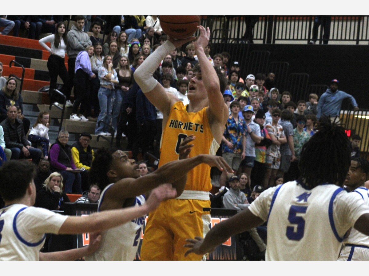 The Hornets would battle back in the second behind a pair of triples from Tommy Carr and took a 26-22 lead at the half.