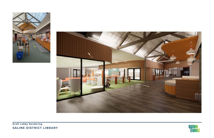The library is working with Quinn Evans Architects and McCarthy & Smith Construction Services on this project, which is scheduled for June to December 2024. Interior renovations will take place in 3 phases to allow the library to stay open to the public as much as possible during construction. The project will cost approximately $4 million, paid for by SDL fund balances that were established for this purpose. The Friends of the Saline District Library have also generously committed to a $100,000 contribution to the project.