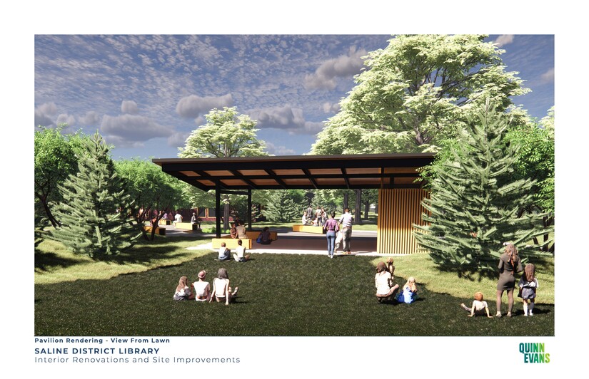 The Saline District Library will begin construction on interior renovations and site improvements in June 2024. The plan calls for an outdoor pavilion and paved story trail on library grounds, and building renovations include more study rooms, larger space for teens, increased comfortable seating areas, a drive-through service window to pick up holds, improved program rooms, a fully accessible non-gendered public restroom, and more.