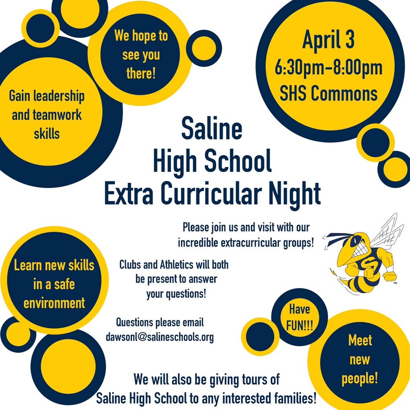 Saline High School is set to welcome future students and families to its Extra Curricular Night on April 3rd, offering a glimpse into high school life beyond the classroom.