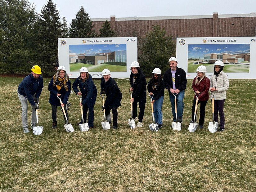 From students to staff members and those involved with the upcoming construction, a group gathered outside Saline High School on that cold early spring morning for a groundbreaking event, marking the start of construction of the STEAM Center and Weight room.
