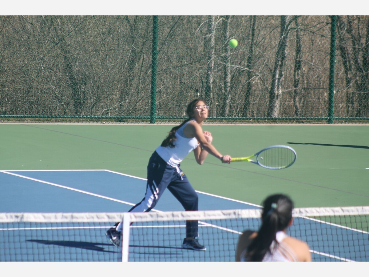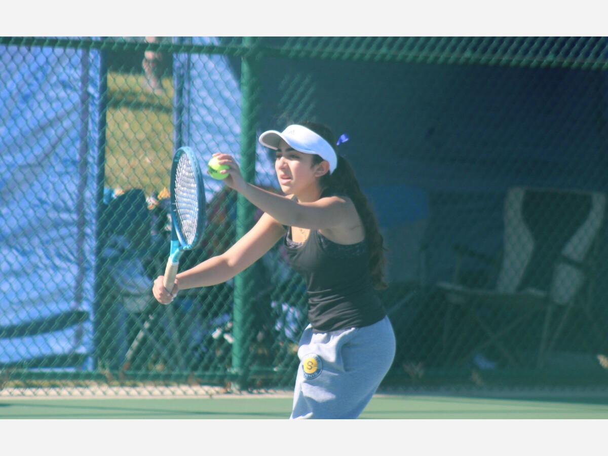 Ellis Buchman and Carmen Pagilinan teamed to win 6-2, 6-4 at three doubles, and Alice Jiang/ Olivia Hallman won 6-2, 6-4 at five doubles.
