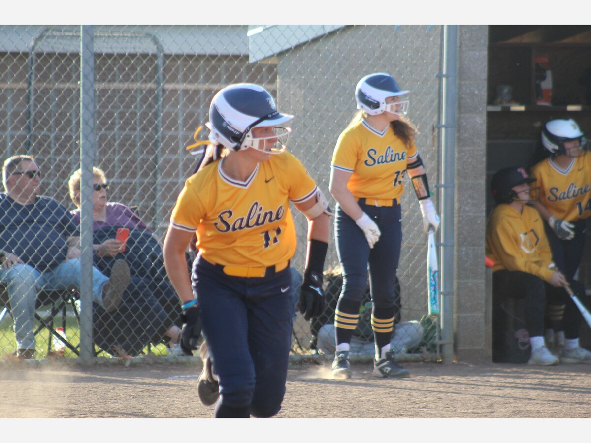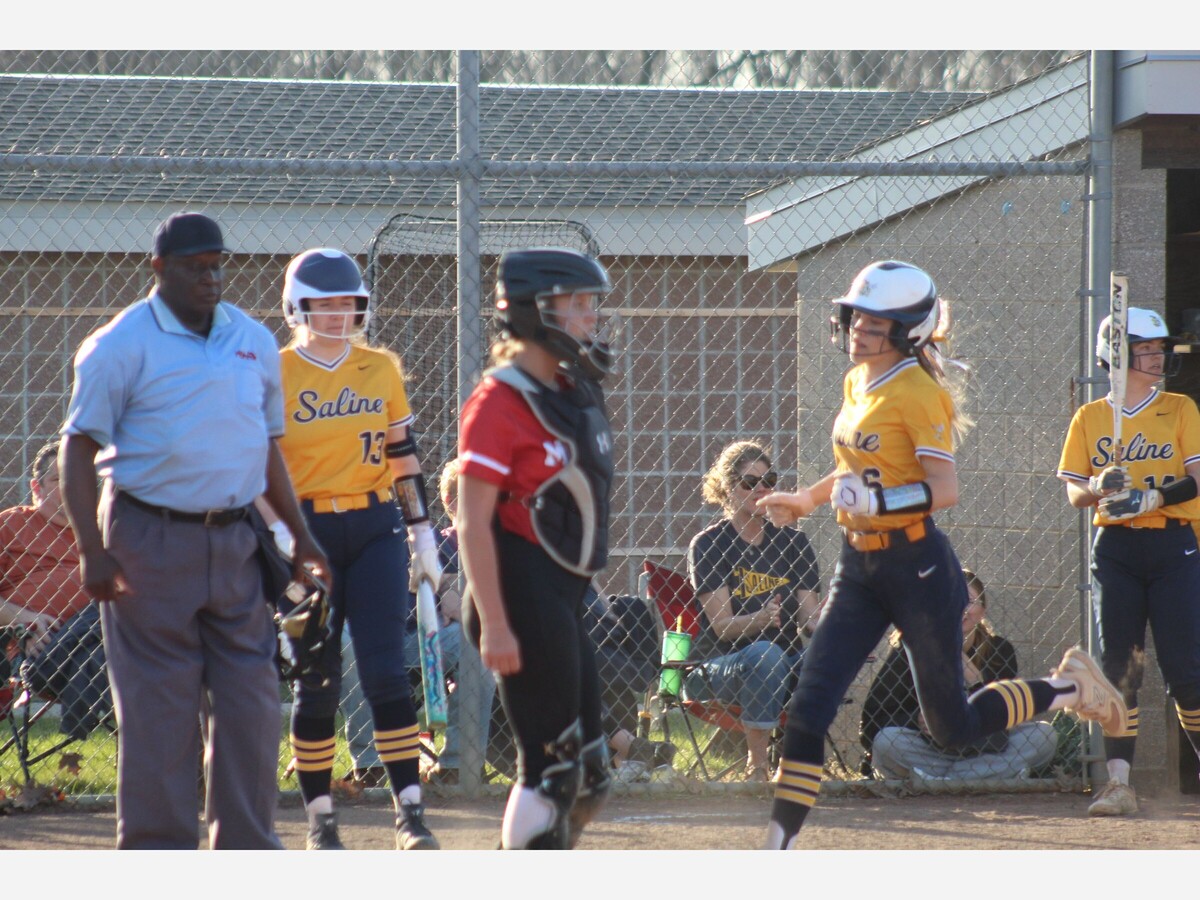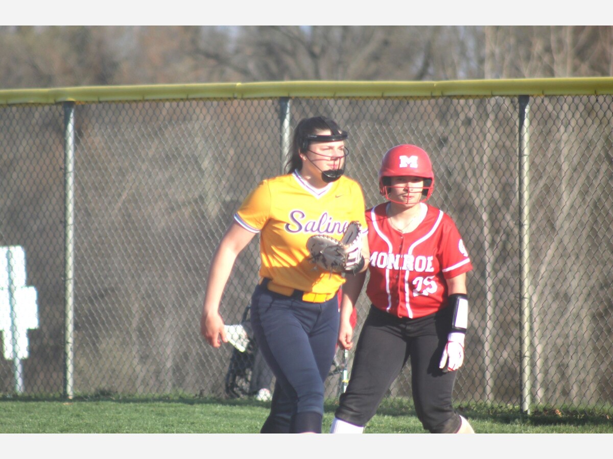The Saline softball team used a big six run fifth inning to rally past Monroe to finish a doubleheader sweep in the SEC Red opener Tuesday night.