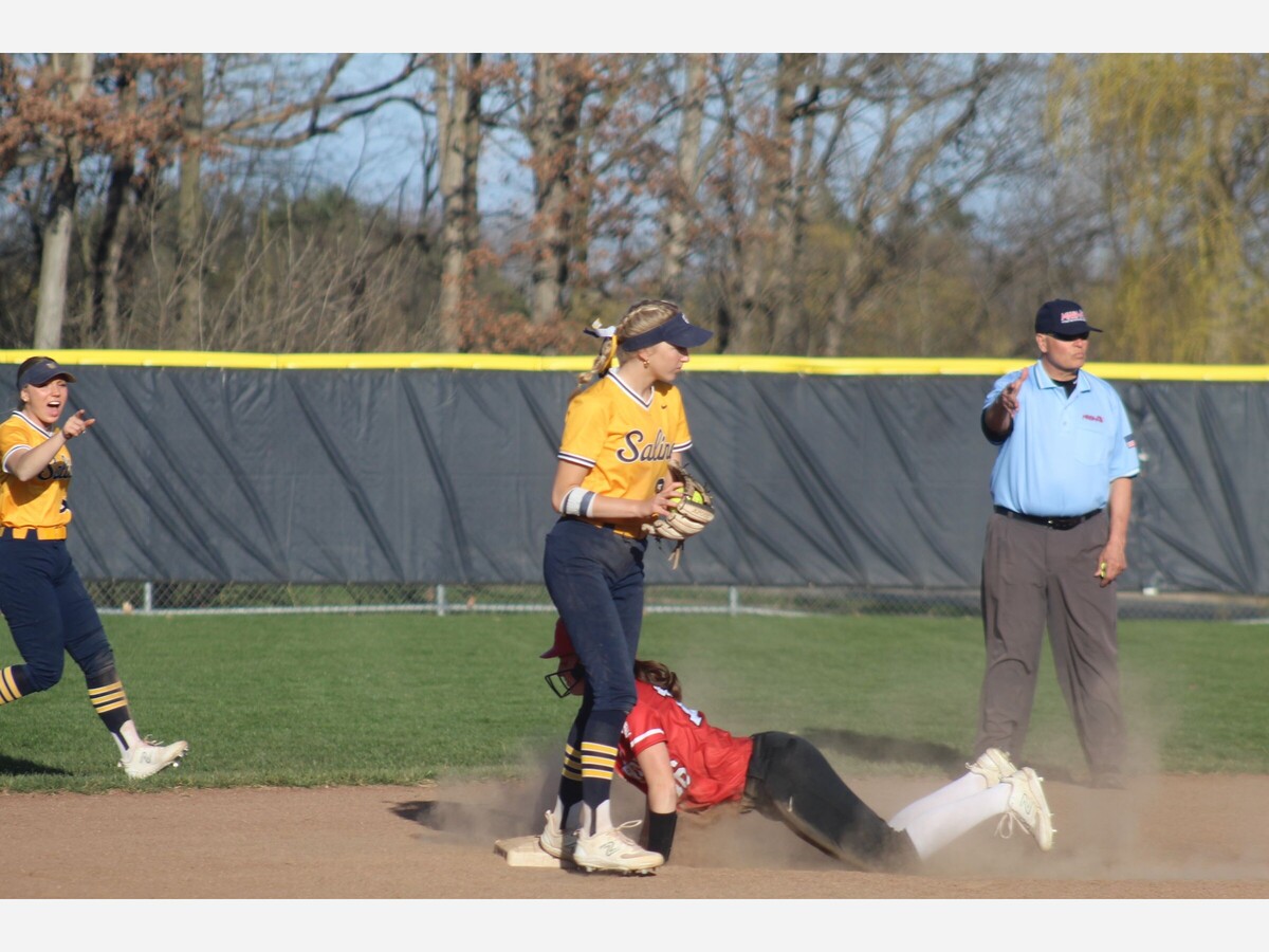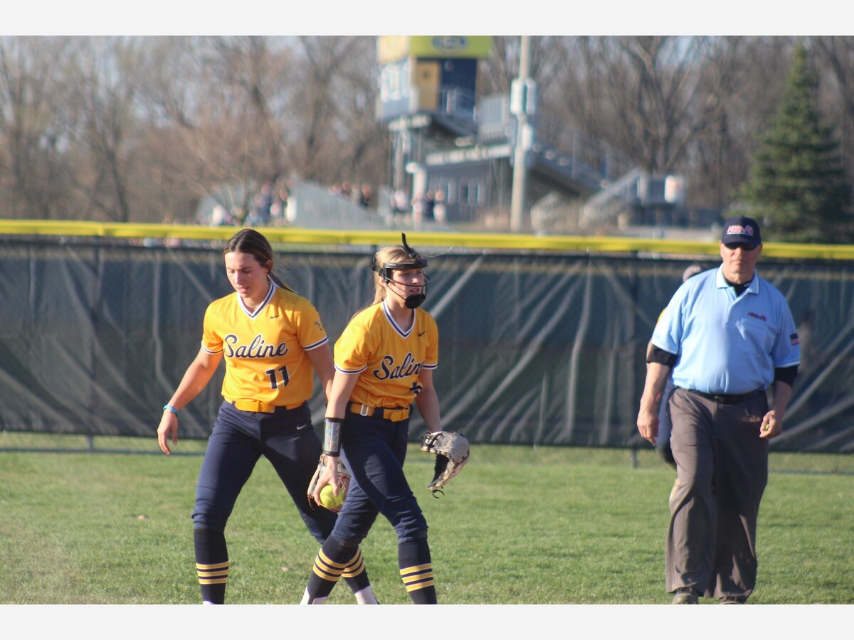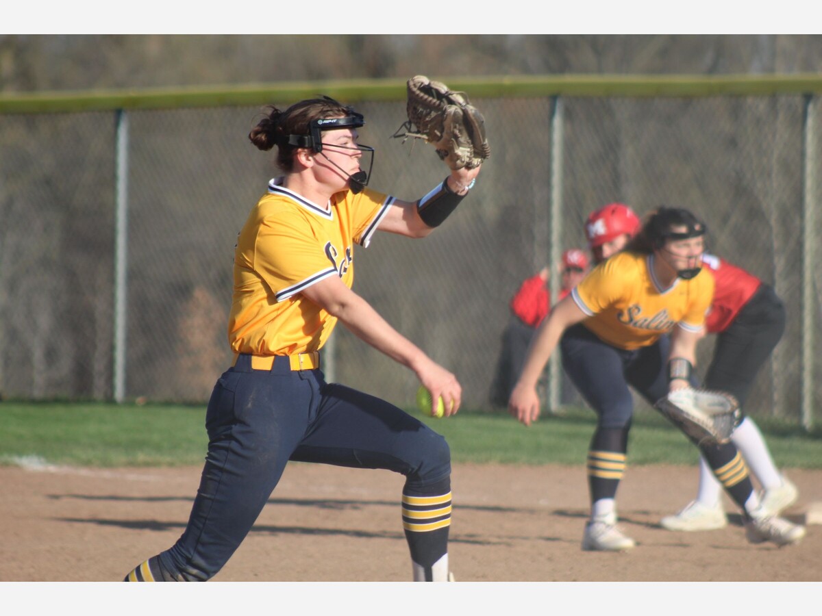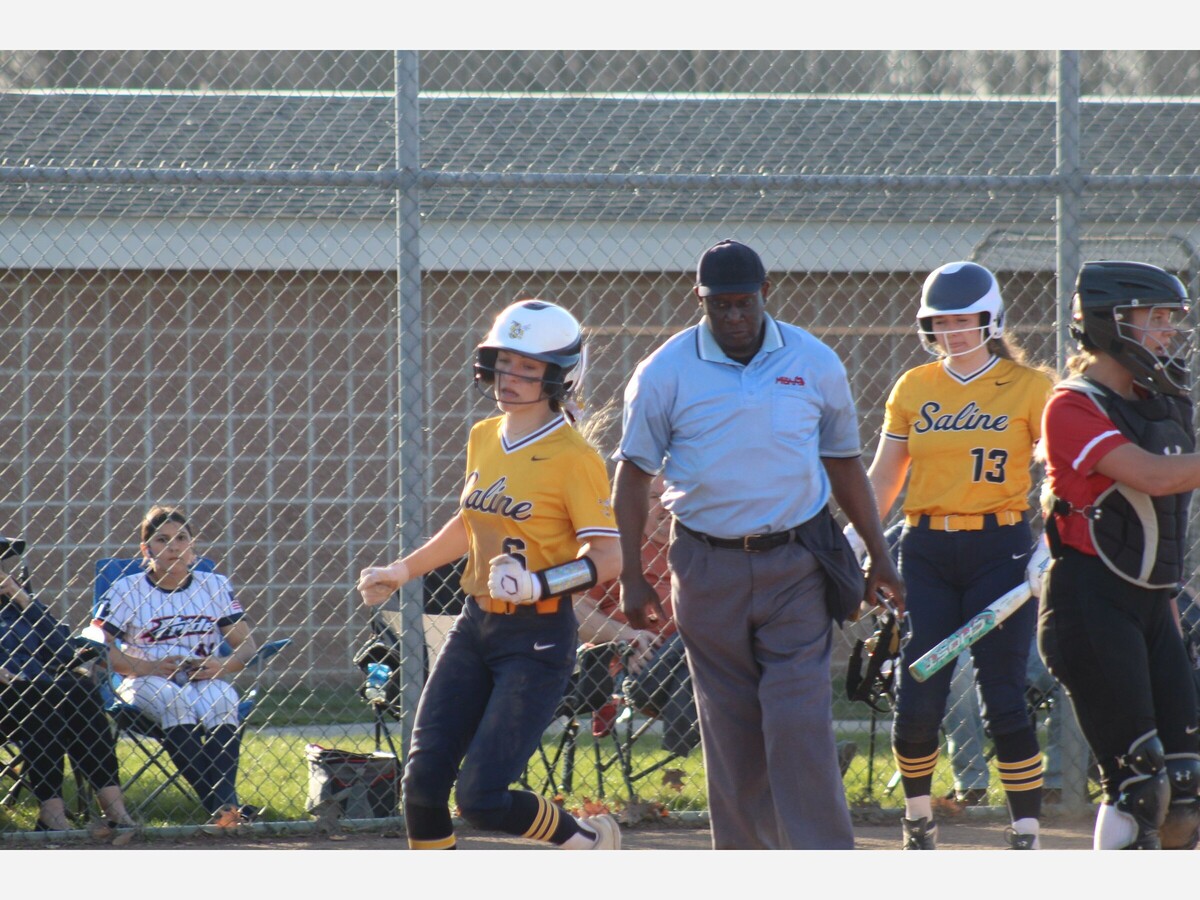 The Saline softball team used a big six run fifth inning to rally past Monroe to finish a doubleheader sweep in the SEC Red opener Tuesday night.