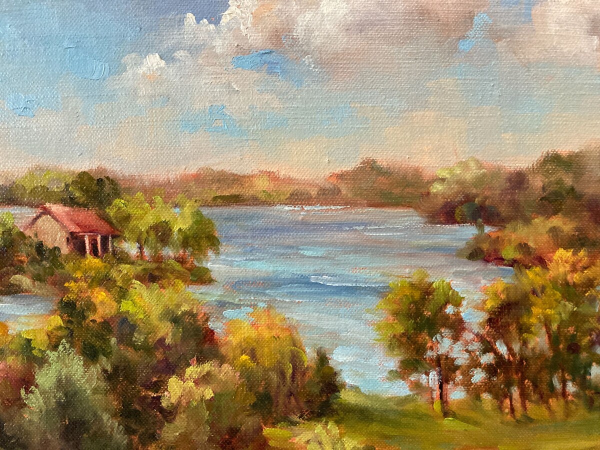 Difazio paints en plein air, in locales throughout the state, where she focuses on the effects of shifting light and shadow within the environment. Her exhibition,“Visual Impressions of Michigan,” captures urban scenes, farms, fields, lakes, rivers, and shore lines of the Great Lakes. “Plein air painting gives me the opportunity to feel the environment and attempt to translate what I experience. The complexity tests my ability to think things out.”
